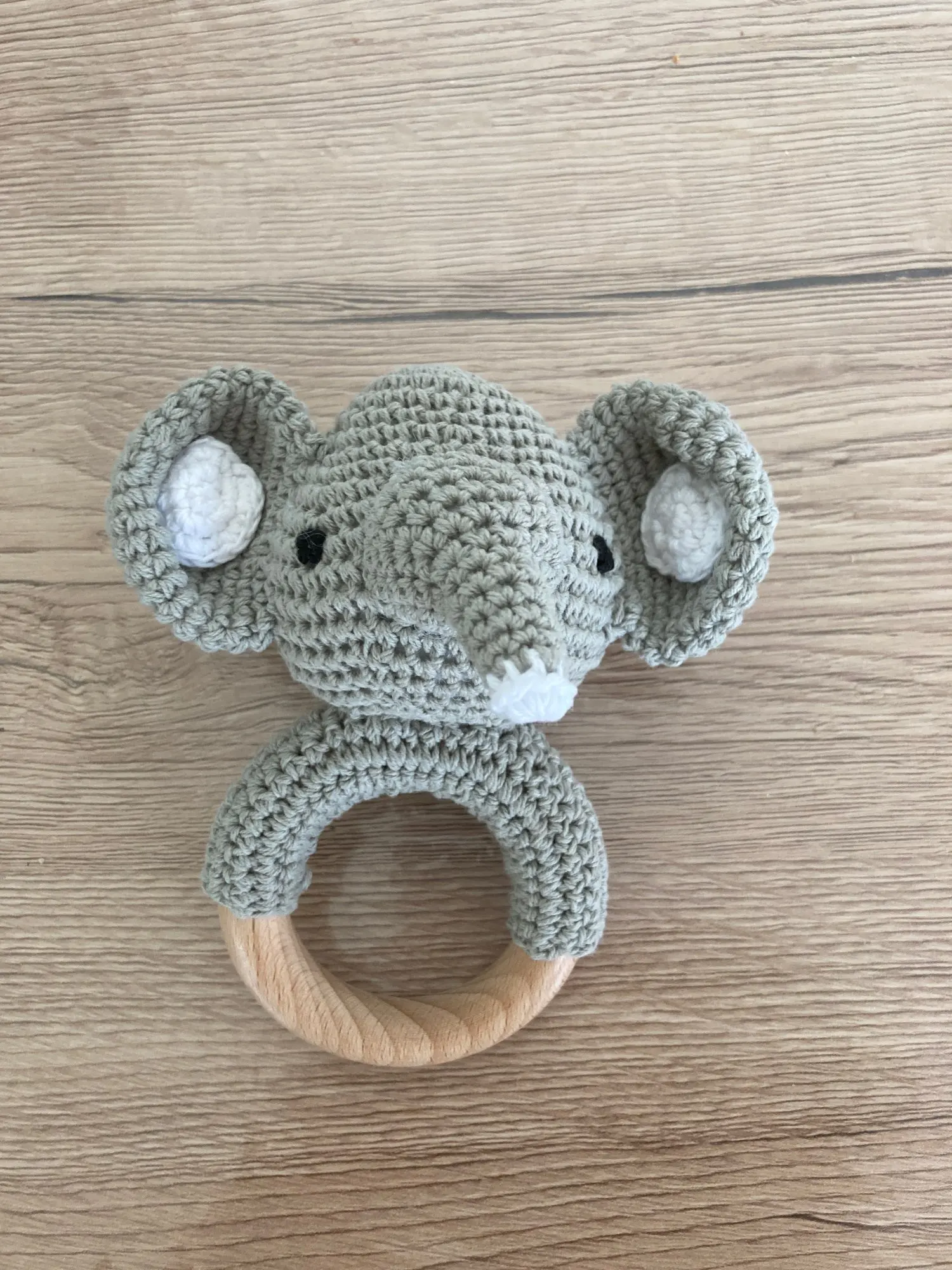 Деревянная погремушка-грызунок для детей, 1 шт., вязаный крючком слон, деревянная погремушка-грызунок, не содержит бисфенола А, мобильная, для тренажерного зала, для коляски, образовательная игрушка