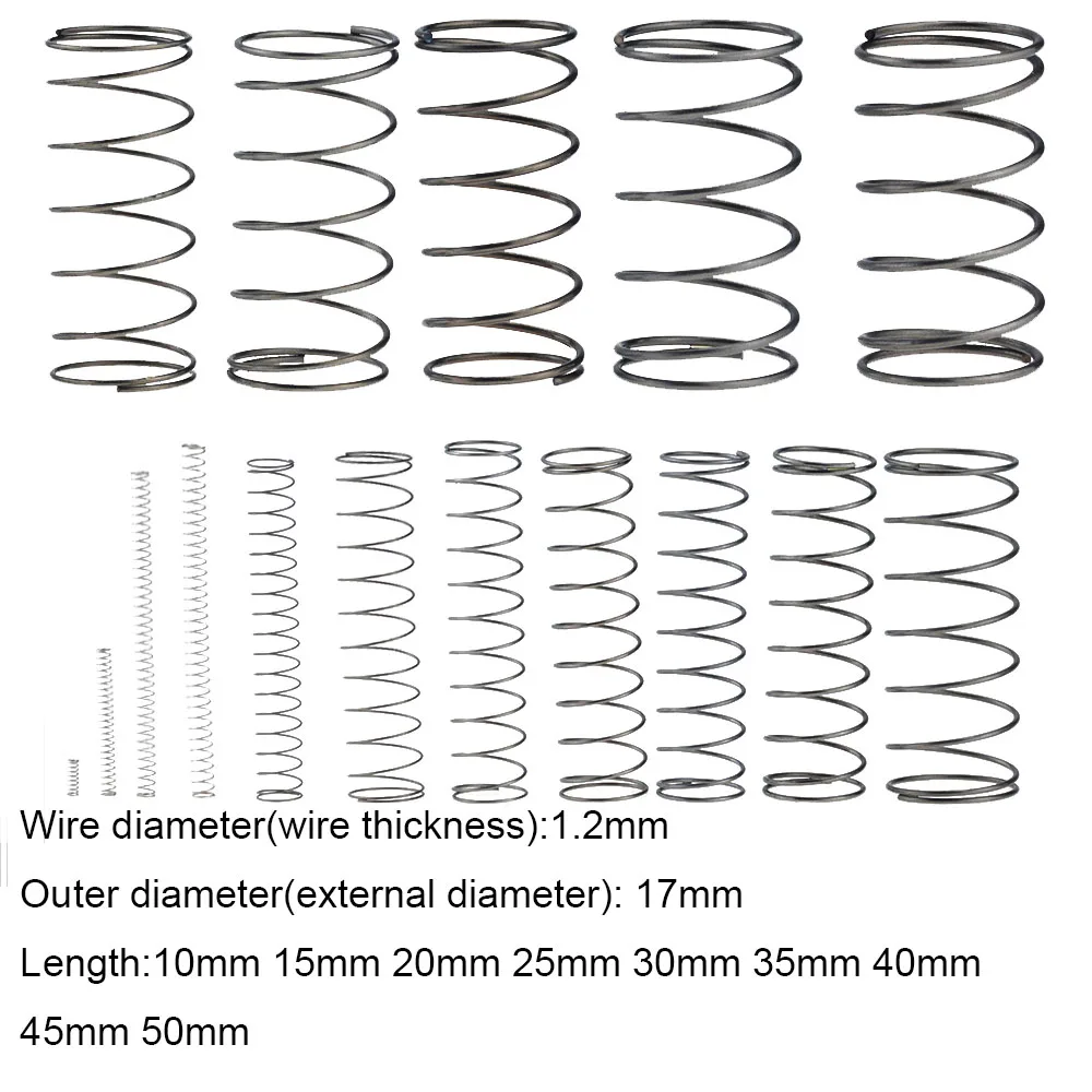 Пружина механическая, 1,2*17*10-50 мм, внешний диаметр 17 мм, 1, 2x17x10-50 мм, 10 шт.