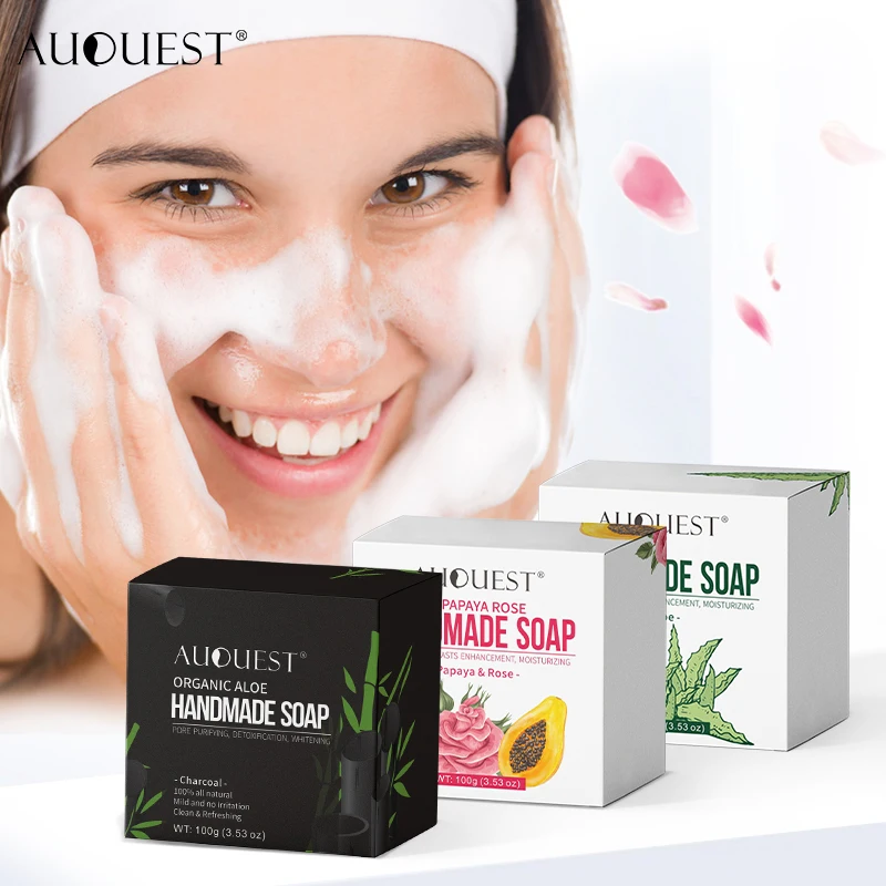 Мыло ручной работы AuQuest с папайей розой, увлажняющее Отбеливающе...