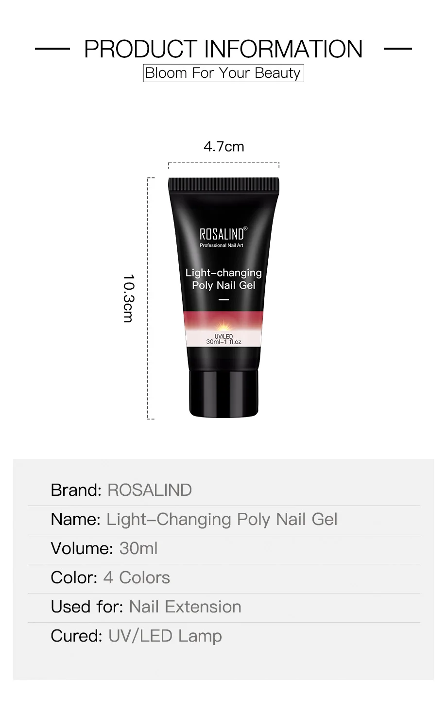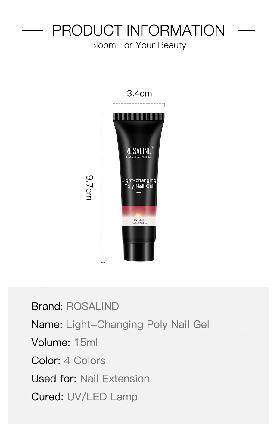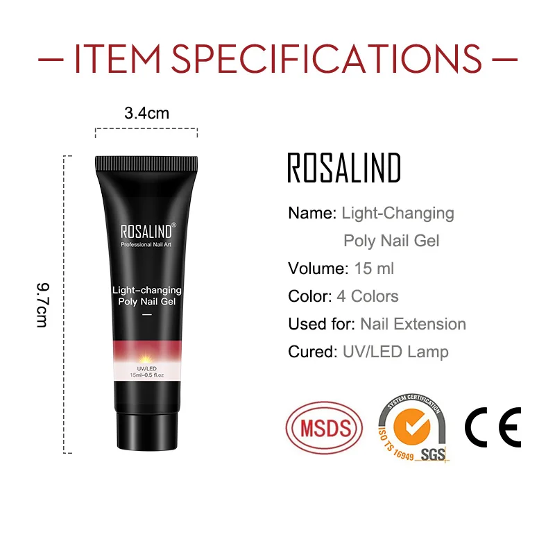 ROSALIND 15 мл/30 мл светильник-изменяющий полигель-лак для ногтей наращивание геля с ложными ногтями Полупостоянный для маникюра ногтей