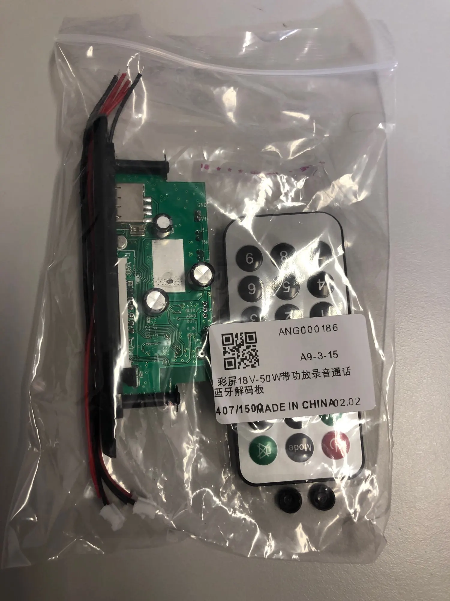 Модуль работает, мощность по китайски завышена, даже пиковая, но для колонок типа настольных компьютерных играют громко. Пульт управления оказался неисправным или не от этого модуля: через камеру видно что светодиод моргает, а модуль никак не реагирует. Старым пультом от аналогичной штуки всё управляется. Продавец не догоняет или оленя включает ( проверьте питание, проверьте подключения). Спорить не стал - пофиг.