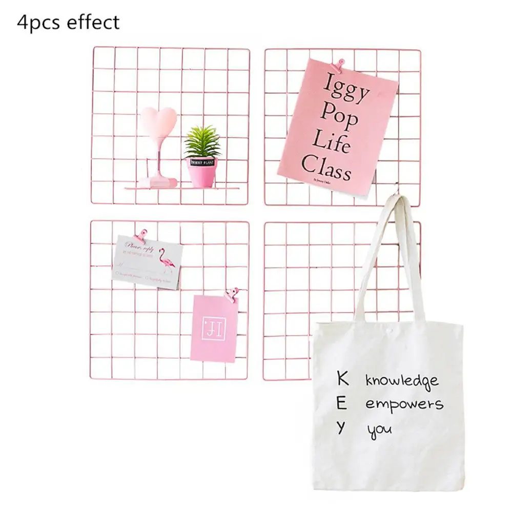 Розовая железная сетка для фотографий, доска настроения, настенная художественная витрина для девочек, Настенный декор для спальни, балкона, украшение для самостоятельной сборки, металлическая стена