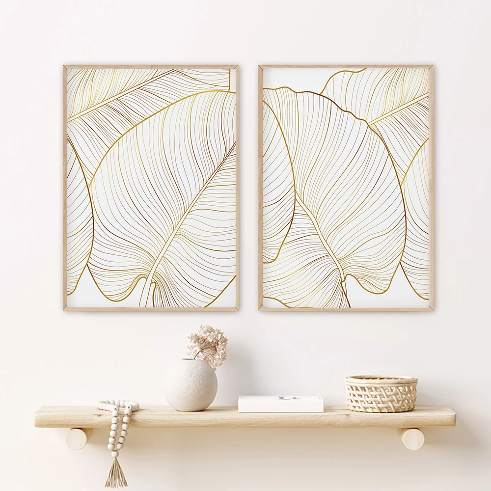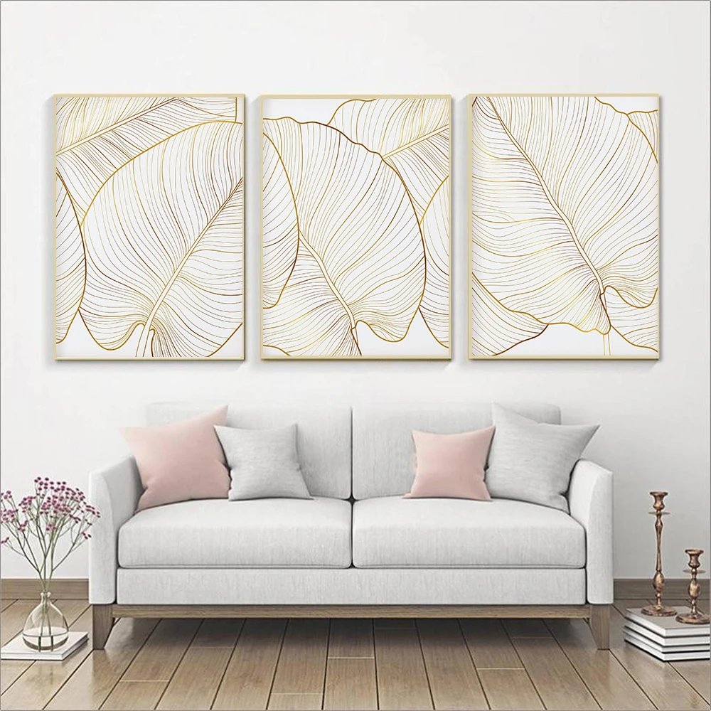 Современная Абстрактная Настенная картина с изображением золотых листьев, фотография на холсте для гостиной, Постер и принты без рамки, Декор
