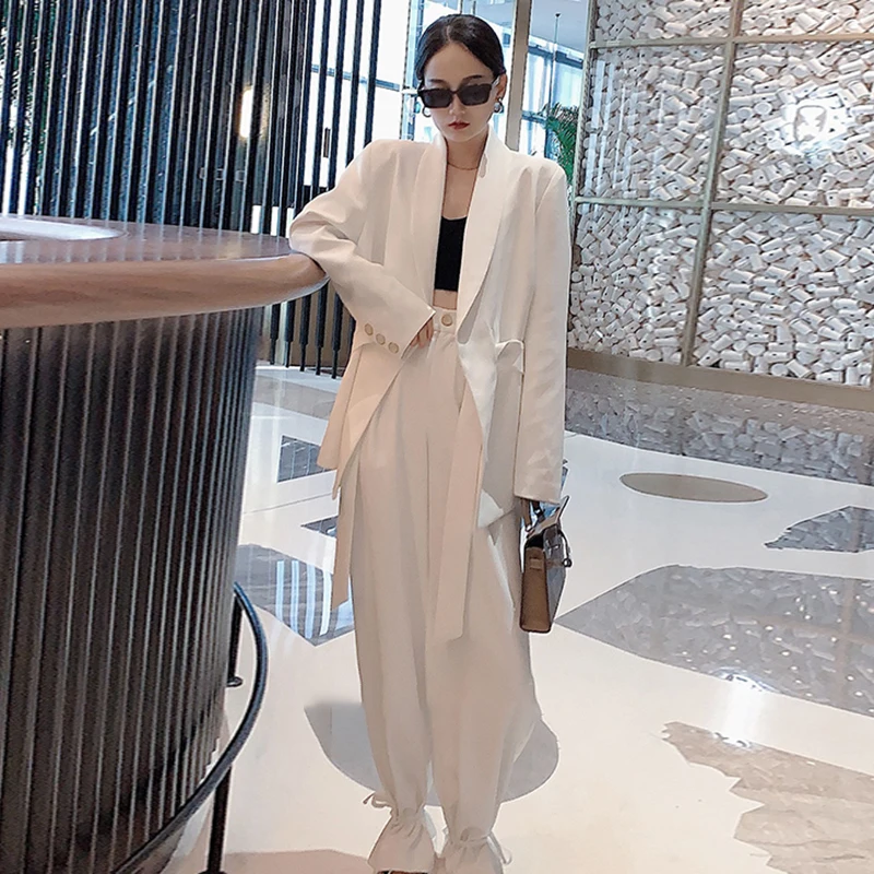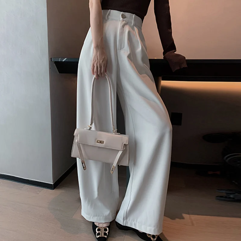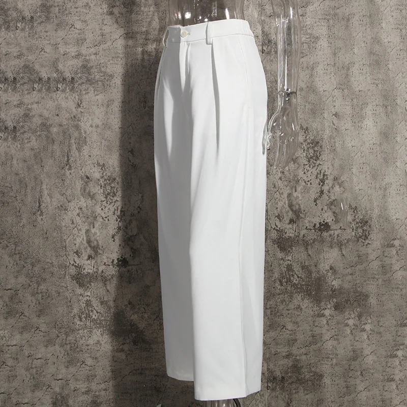 Женские брюки со складками GALCAUR, белые свободные брюки с высокой талией, с карманами, широкие, размера плюс, 2020