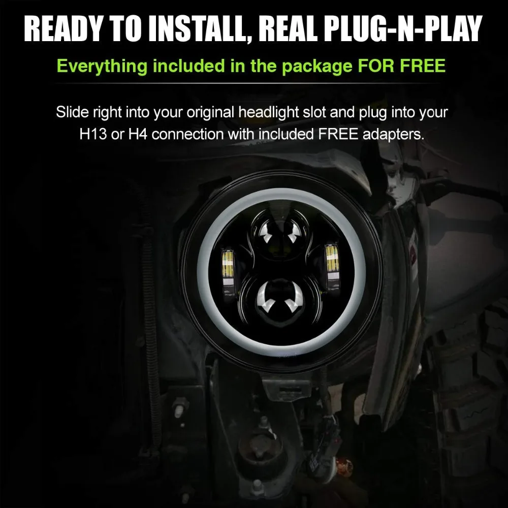 7 дюймов 150 Вт Halo глаза ангела фары автомобиля светодиодный фары для внедорожника грузовик мото светодиодный 12V 24V указатели поворота круглый беговые кроссовки nikeeinglys лампа H4 H13