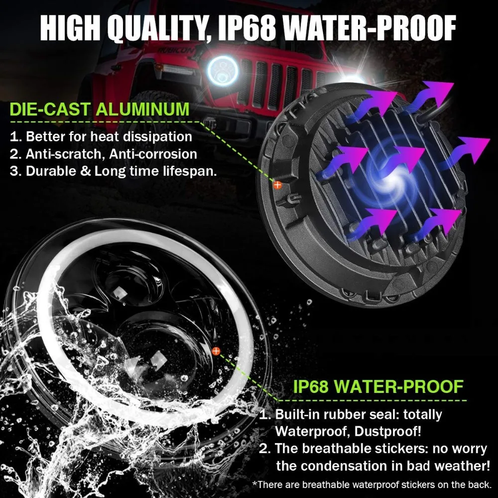 7 дюймов 150 Вт Halo Angel Eye Автомобильный светодиодный фонарь для внедорожника, грузовика, Мото Светодиодный Фонарь 12 в 24 В, поворотные огни, дневные ходовые огни H4 H13
