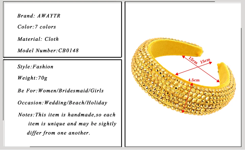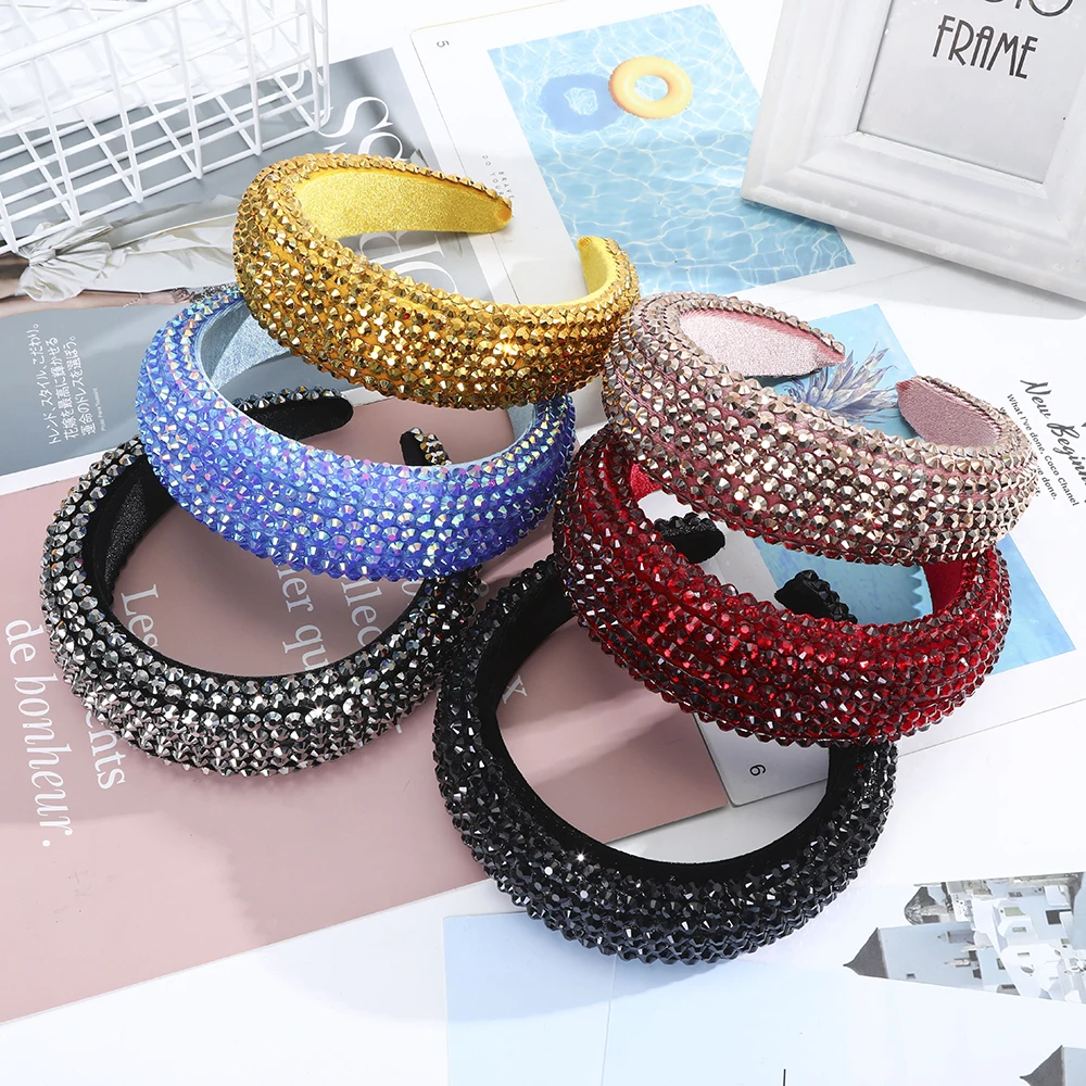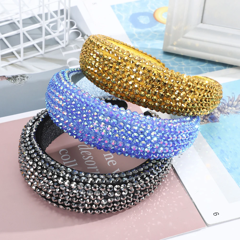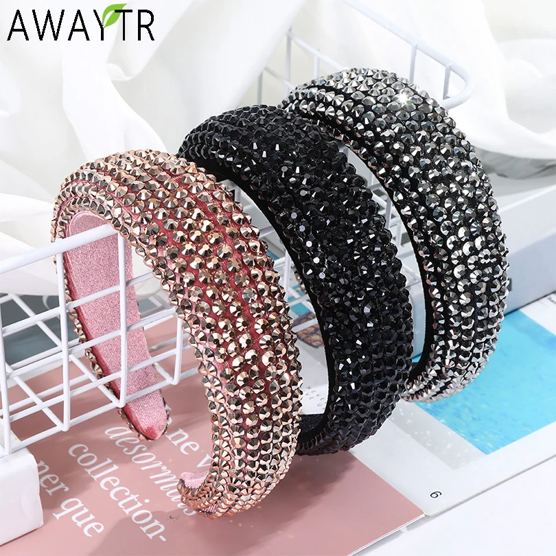 Женская повязка на голову AWAYTR, широкая эластичная Тиара с кристаллами, со стразами в стиле барокко