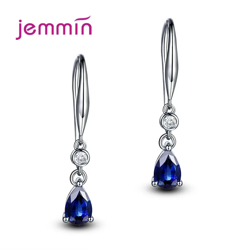 Натуральная 925 стерлингового серебра в виде капли воды длинные висячие серьги для женщин Свадебные серебряные ювелирные украшения на свадьбу для девочек, Engagemnet подарок