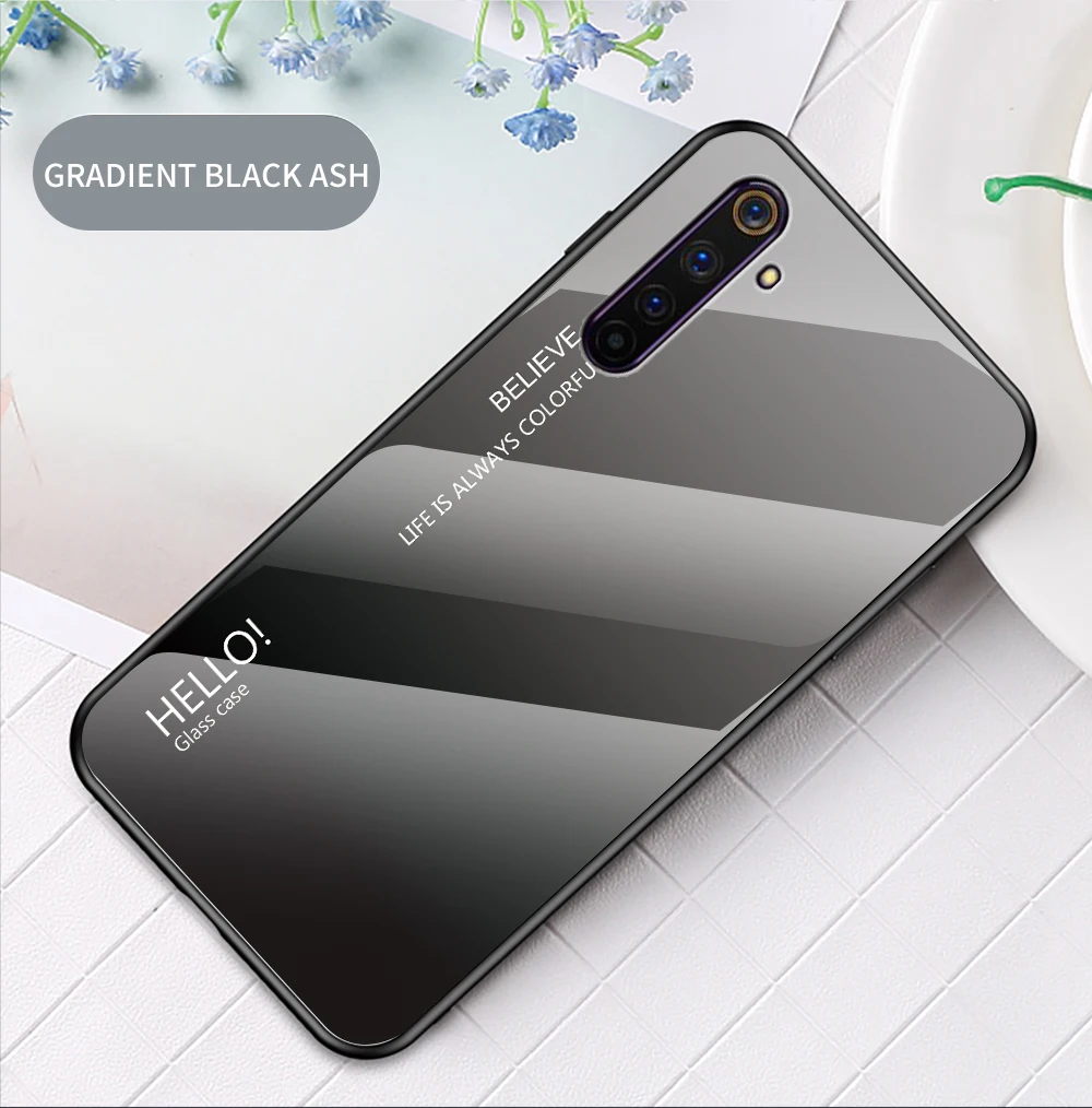 Чехол из органического стекла тпу для Realme X7 X50 7 6 5 3 X2 Pro XT 5i V5 V3 Q C15 C11 C3 C2 X3 с градиентным закаленным стеклом