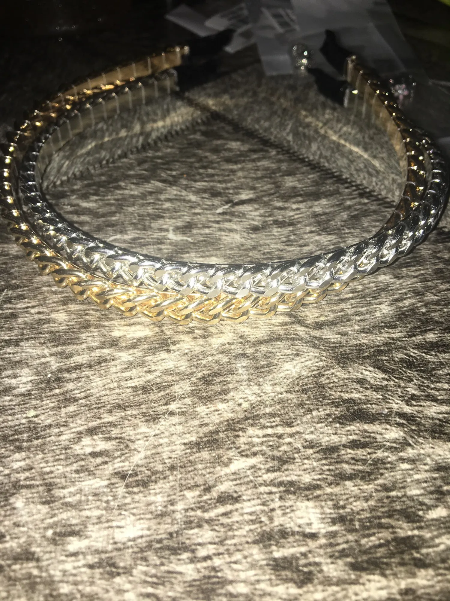 Красивый обруч. Не давит. Он, можно сказать, мягенький. Очнеь хорошо блестит. Выглядит нежно на волосах. Советую Пришёл супер быстро в Канаду Большое спасибо