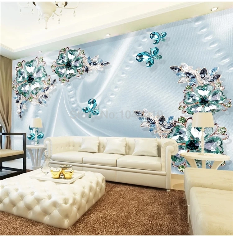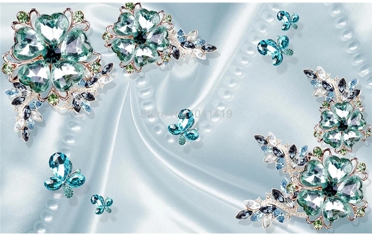 Настенные 3D обои на заказ любого размера, стерео, Зеленые хрустальные цветы, роскошная настенная живопись, гостиная, телевизор, диван, спальня, обои