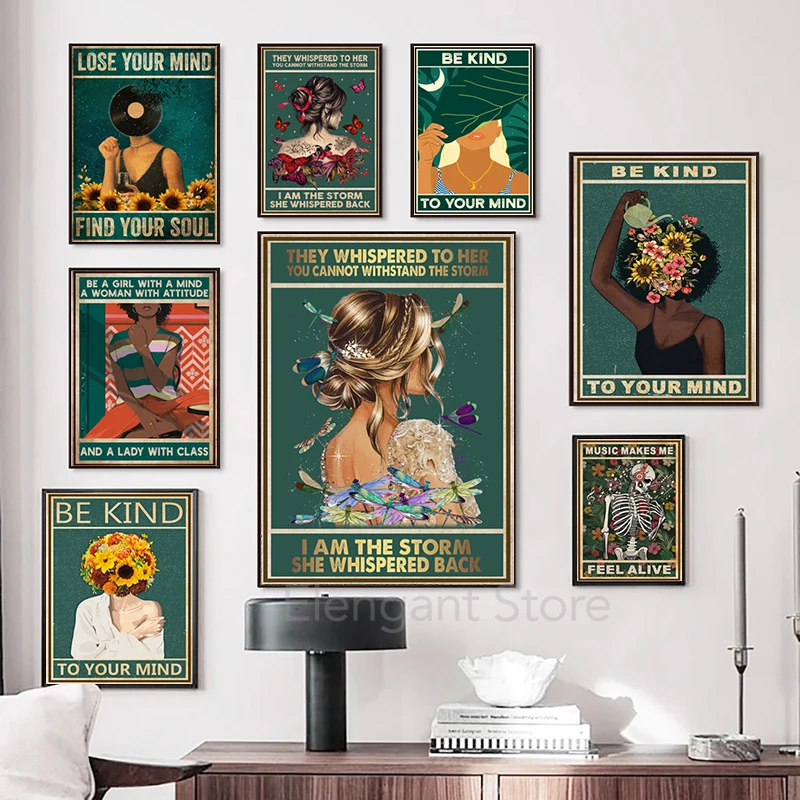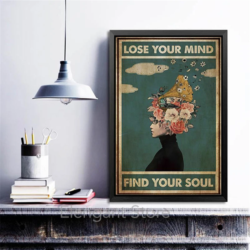 Ретро-постер потеряй свой разум, Найди свою душу, вдохновляющие цитаты, художественные принты, абстрактные картины на холсте для девушек, винтажный Настенный декор