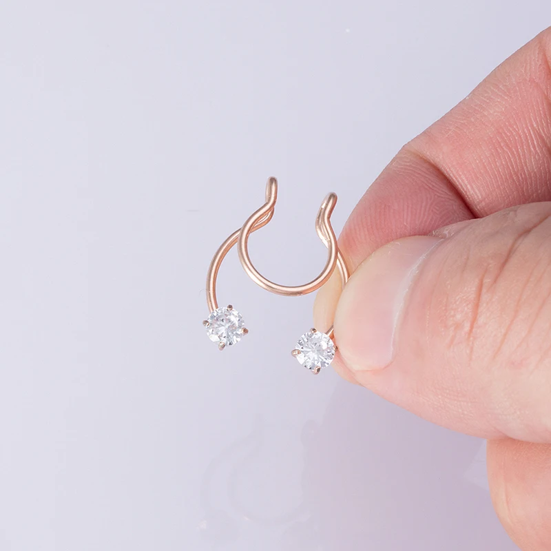 Кольцо для носа в стиле циркониевый зажим и унисекс, поддельные пер...