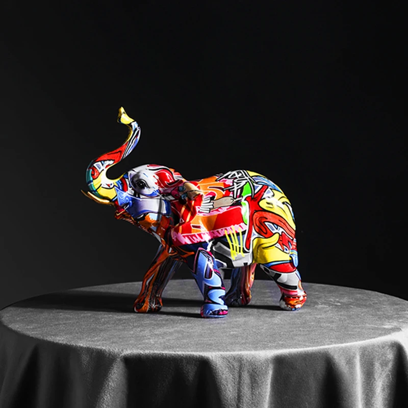 Цветная скульптура слона, Современное украшение для дома, креативная скульптура из смолы, украшение для гостиной, винного шкафа