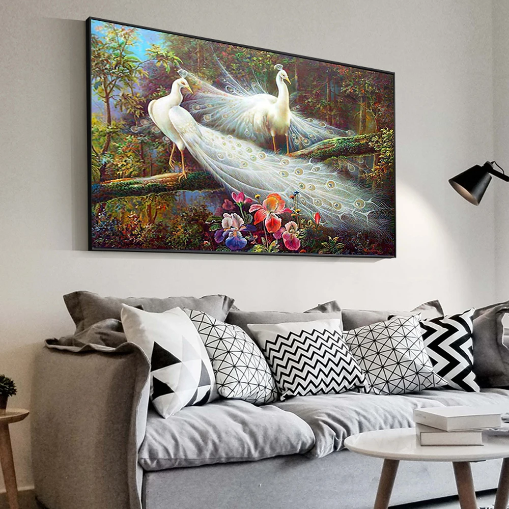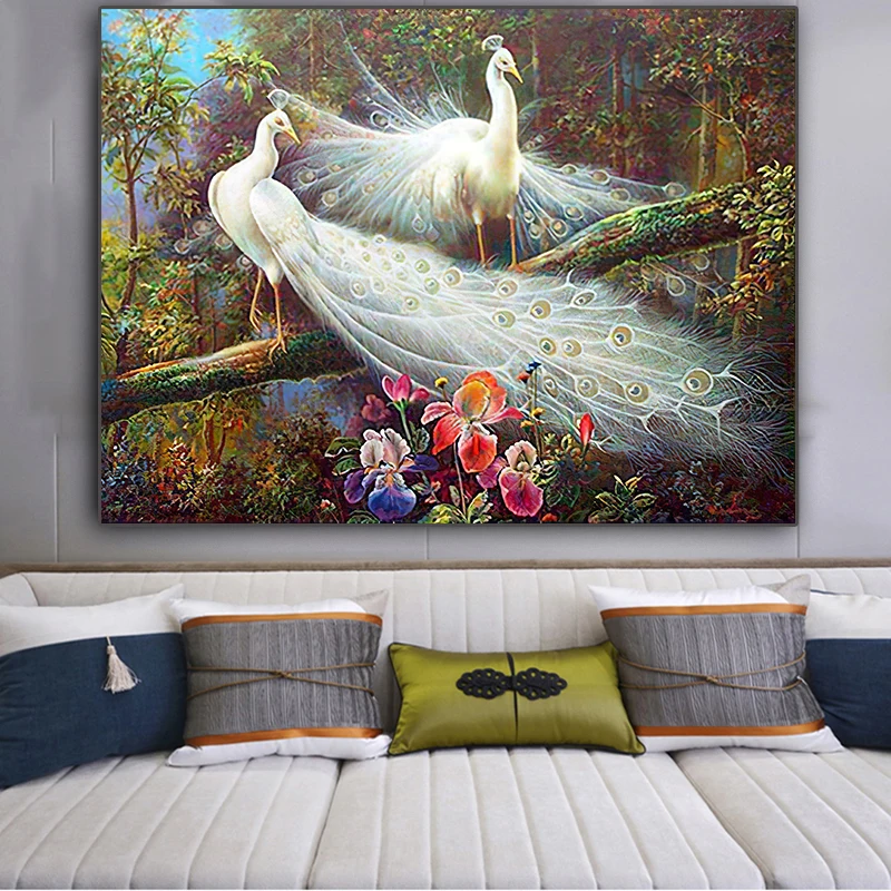 Картина в скандинавском стиле, два прекрасных павлина, стоящие на дереве, плакаты и принты для украшения дома, гостиной