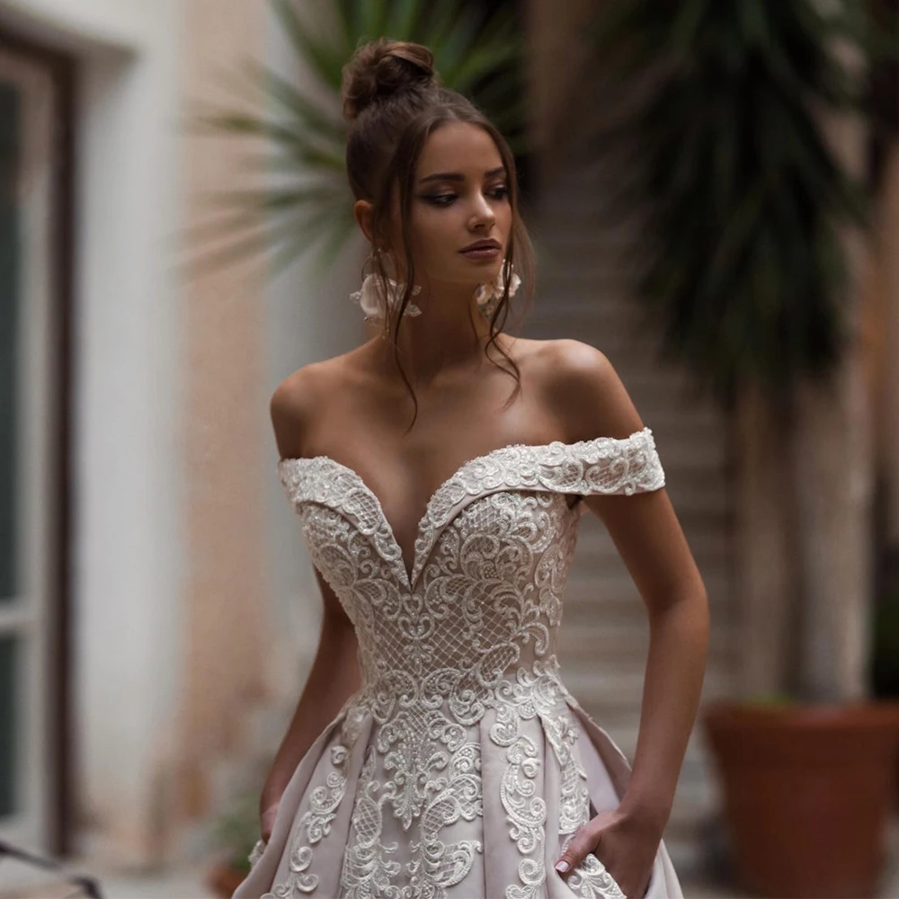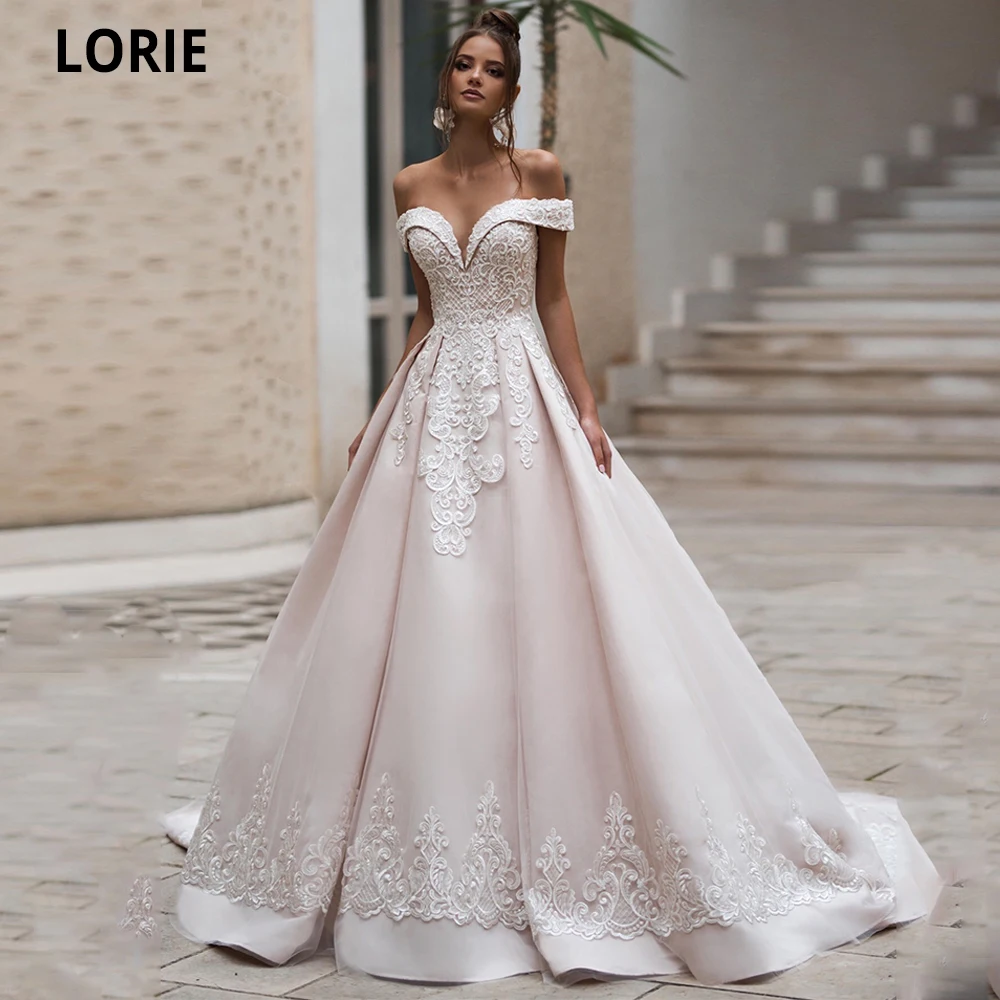 LORIE атласные свадебные платья с открытыми плечами пляжные свадебные платья элегантные кружевные винтажные Свадебные платья с аппликацией на шнуровке 2021