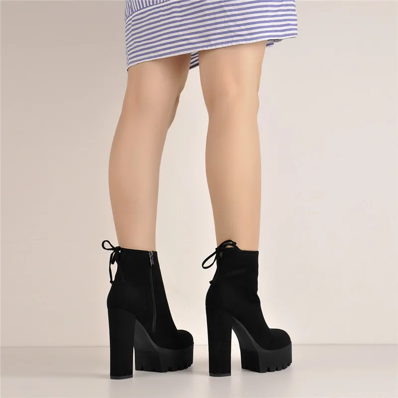 Женские флоковые ботильоны Onlymaker, на платформе 13-14 см, со шну...