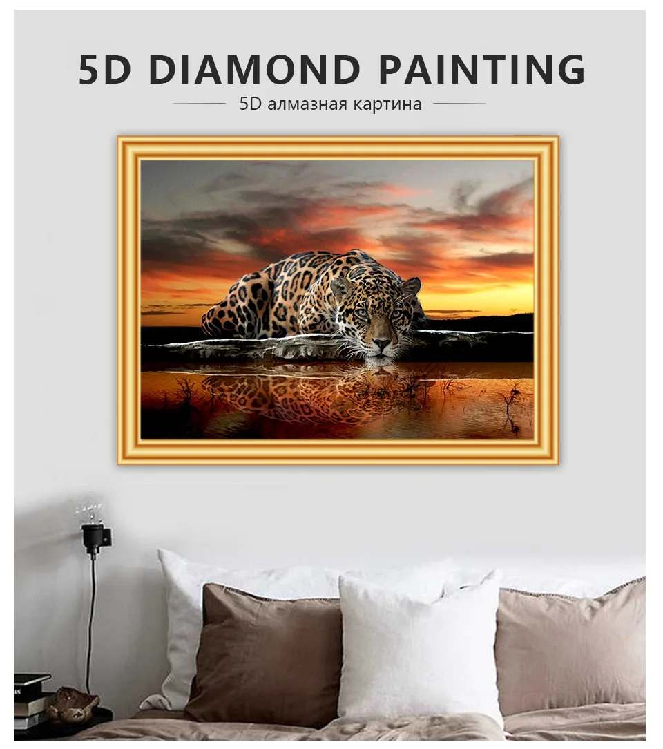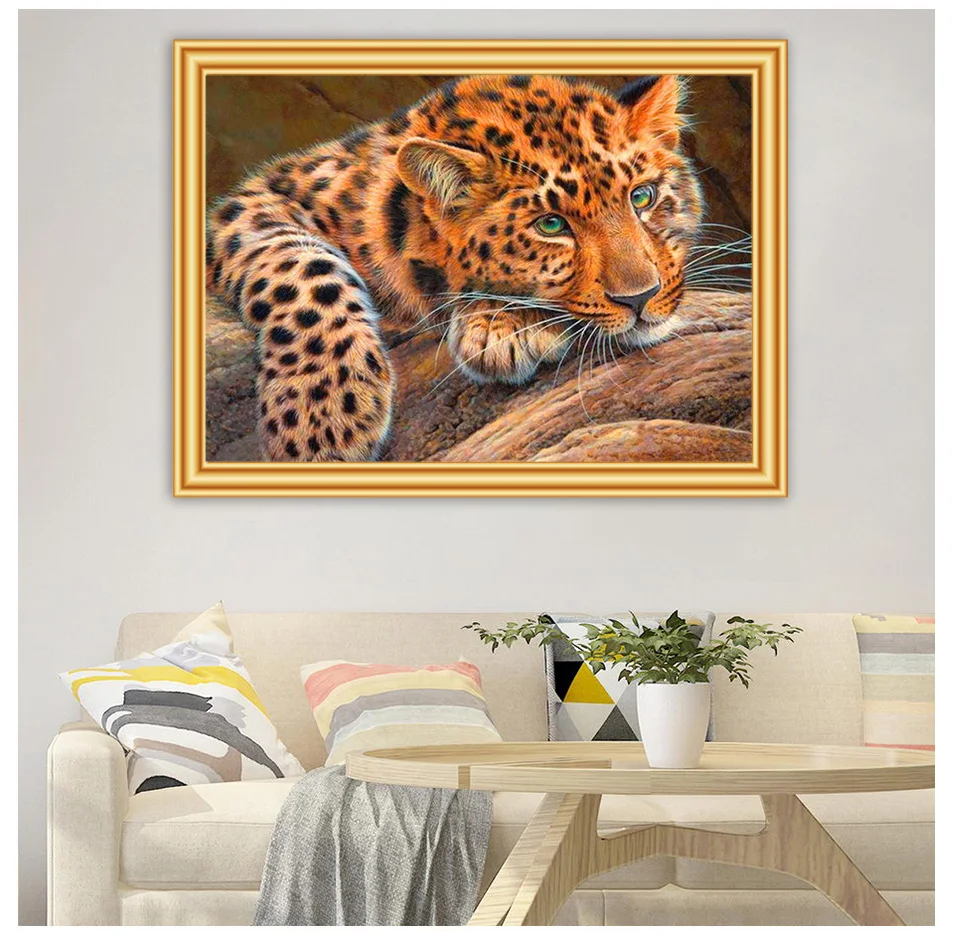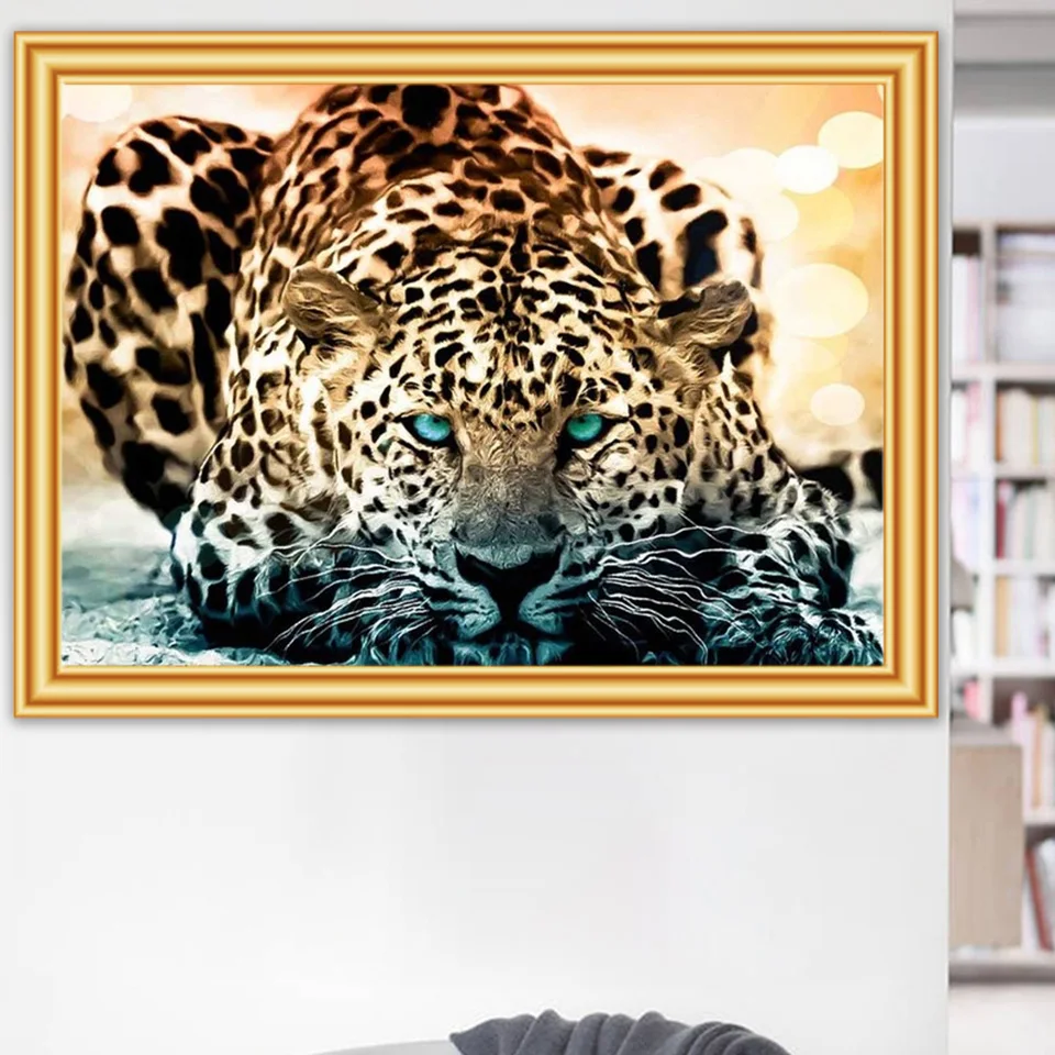 Набор для алмазной вышивки 5D сделай сам с леопардовым принтом, Набор для вышивки крестиком, мозаика из квадратных страз для домашнего декора