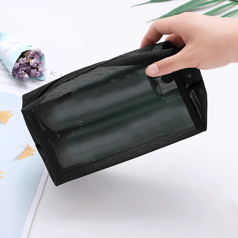 Прозрачная косметичка черного цвета, Сетчатая Сумка для макияжа, органайзер для ванны, дорожная сумка для туалетных принадлежностей, косметичка для хранения, чехол для косметического набора