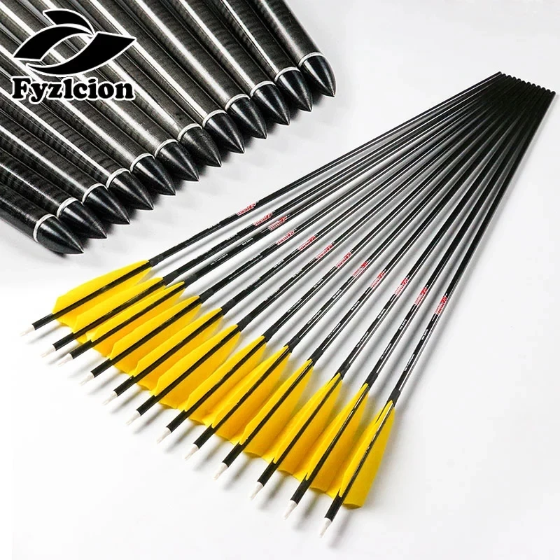 Стрелы из блочногорекурсивного лука 6 шт., из чистого карбона, W 5 дюймов, перья индейки, для охоты, арбалета
