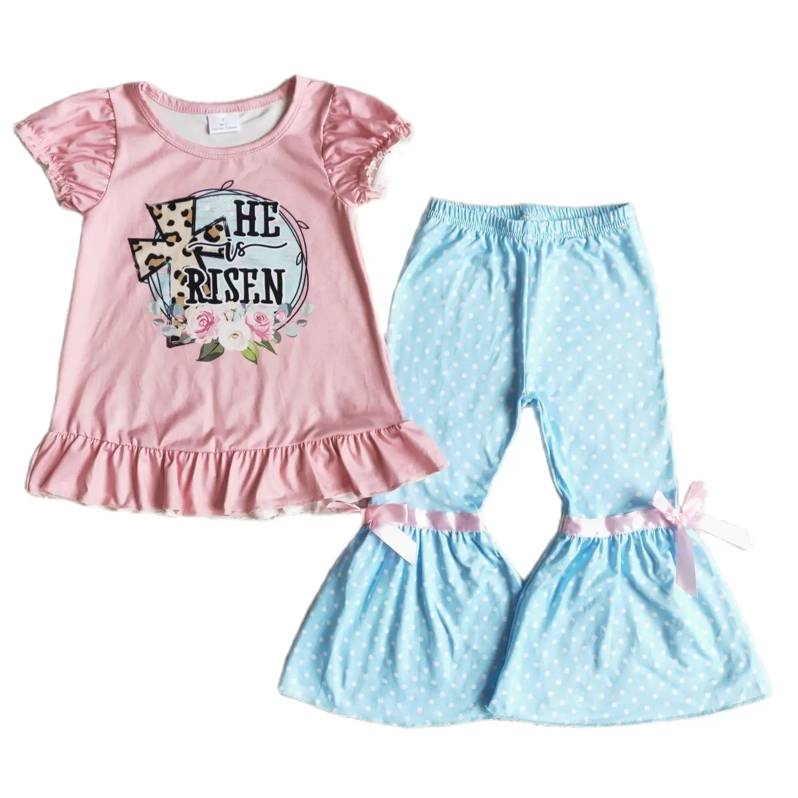 Детская Весенняя розовая рубашка с перекрестными штанинами в голубой горошек