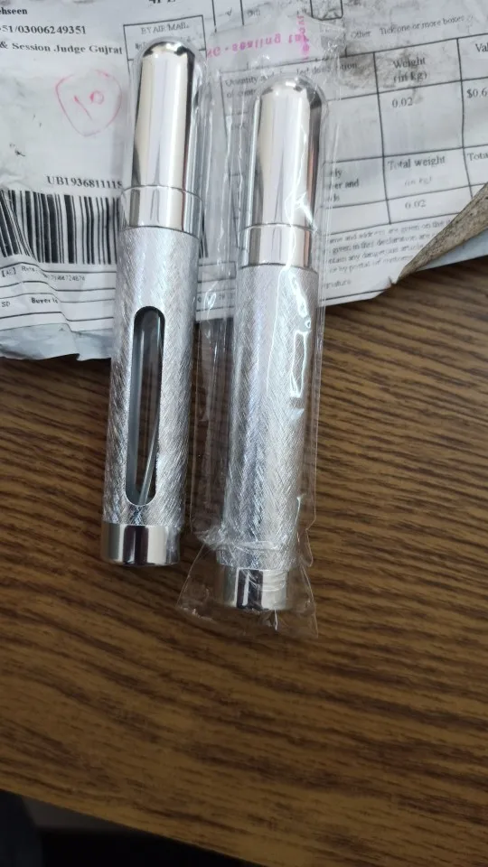 Заказ пришёл за месяц. Продавец отвечает на сообщения. Обернуты для безопасности в пупырку. Все пришло целое и без изъянов. Цвета приятные все. Автомайзер 12мл, замерила шприцом, вышло прям до краёв. Потому 10мл однозначно входит и будет достаточно. Флакон не протекает, внутри корпуса не болтается, так как имеется пластиковые мягкие вставки. Пульвизатор распыляет широкой и экономный пшиком, а не струёй в одну точку. Метал корпуса жёсткий хоть и тонкий и пальцами его не согнуть. Буду заказывать ещё!))Спасибо продавец.