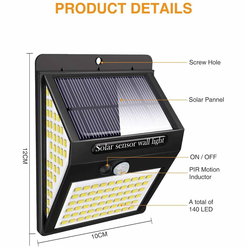 140LED Экологичные солнечные огни Открытый датчик движения беспроводной широкий угол водонепроницаемый настенный светильник садовый забор двери двора гаража