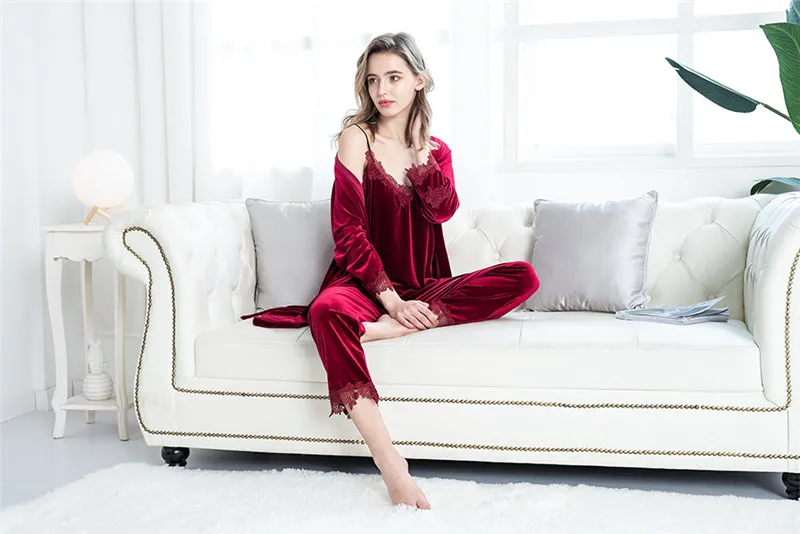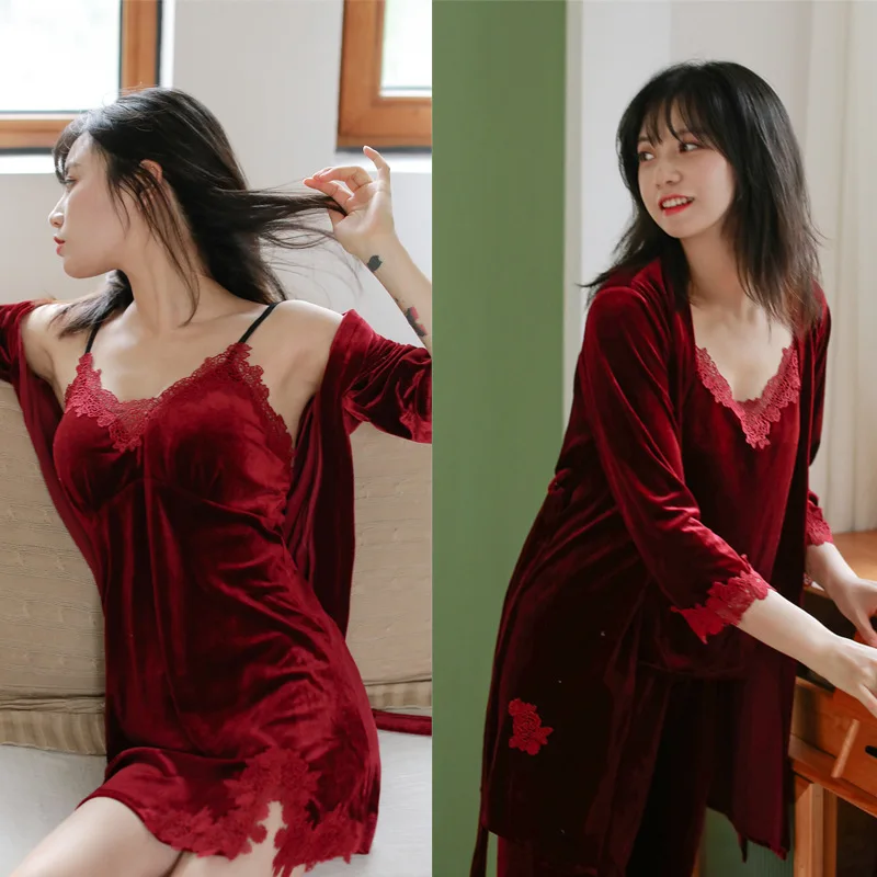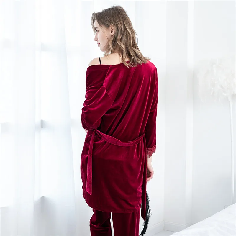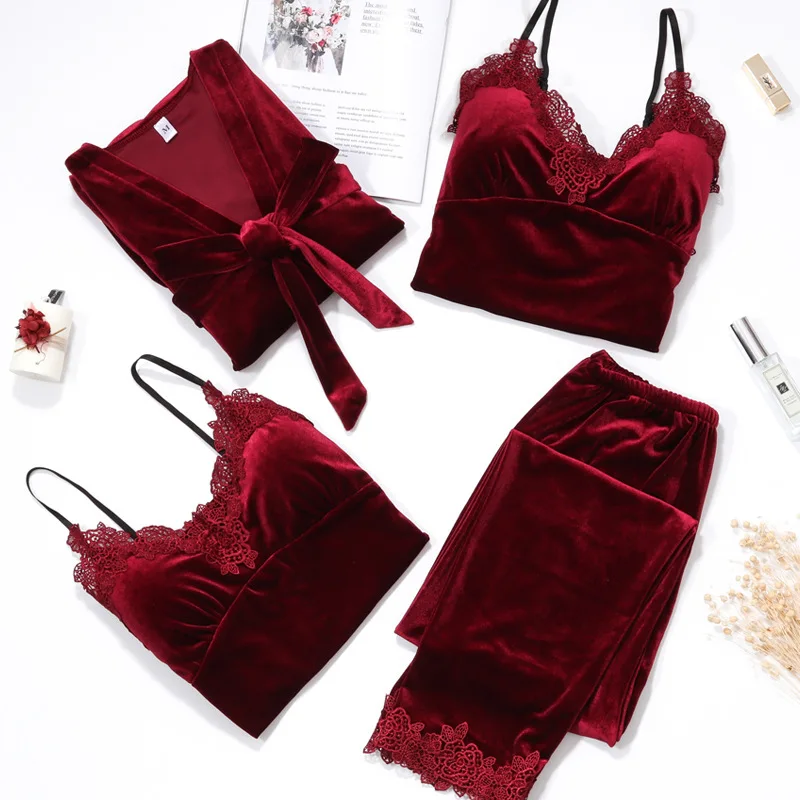 Женский бархатный пижамный комплект JULY'S SONG, из 4 предметов, на зиму, кружевные шорты, теплая одежда для сна
