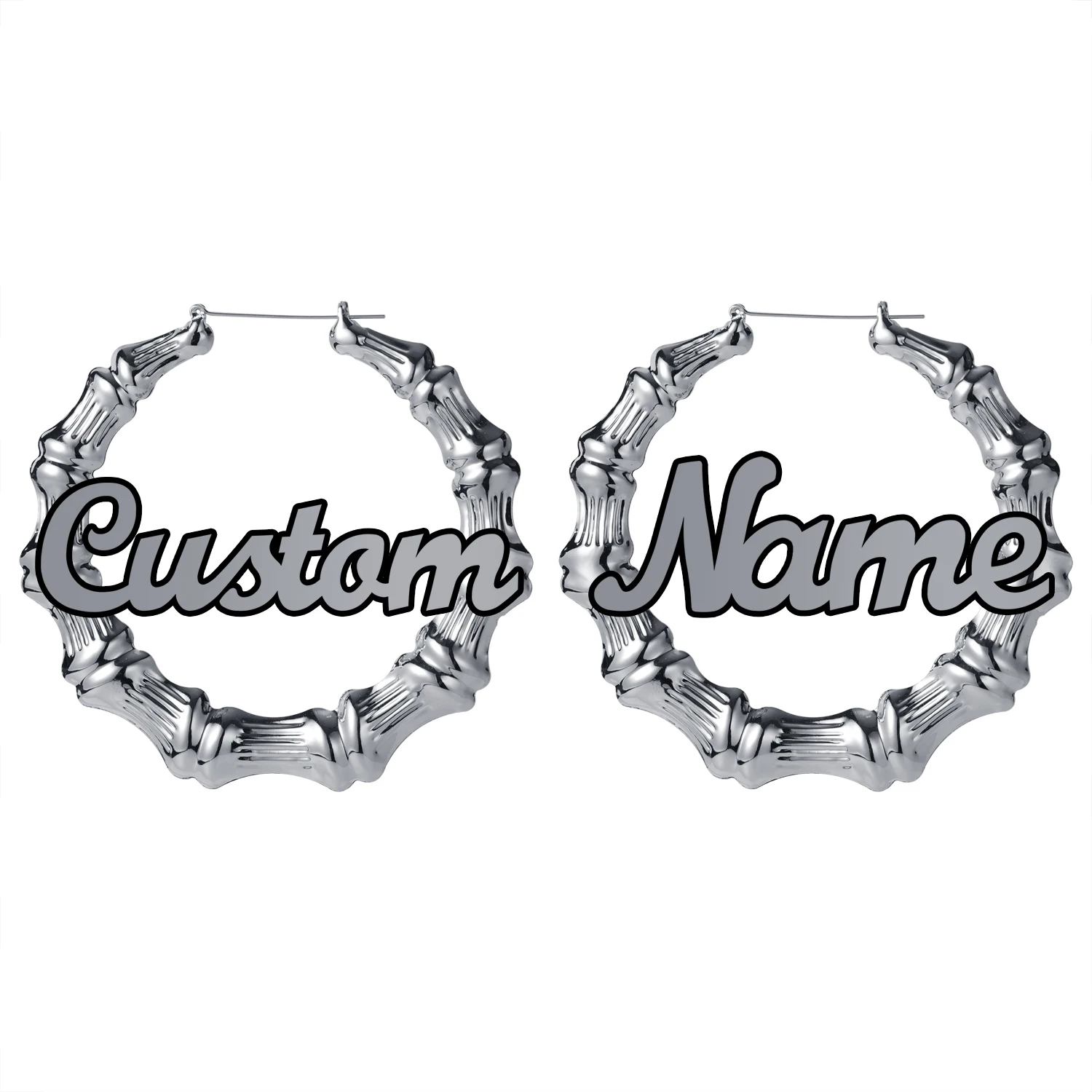 Женские серьги-кольца из нержавеющей стали Бамбук Серьги-кольца, с цифрами и надписями на заказ