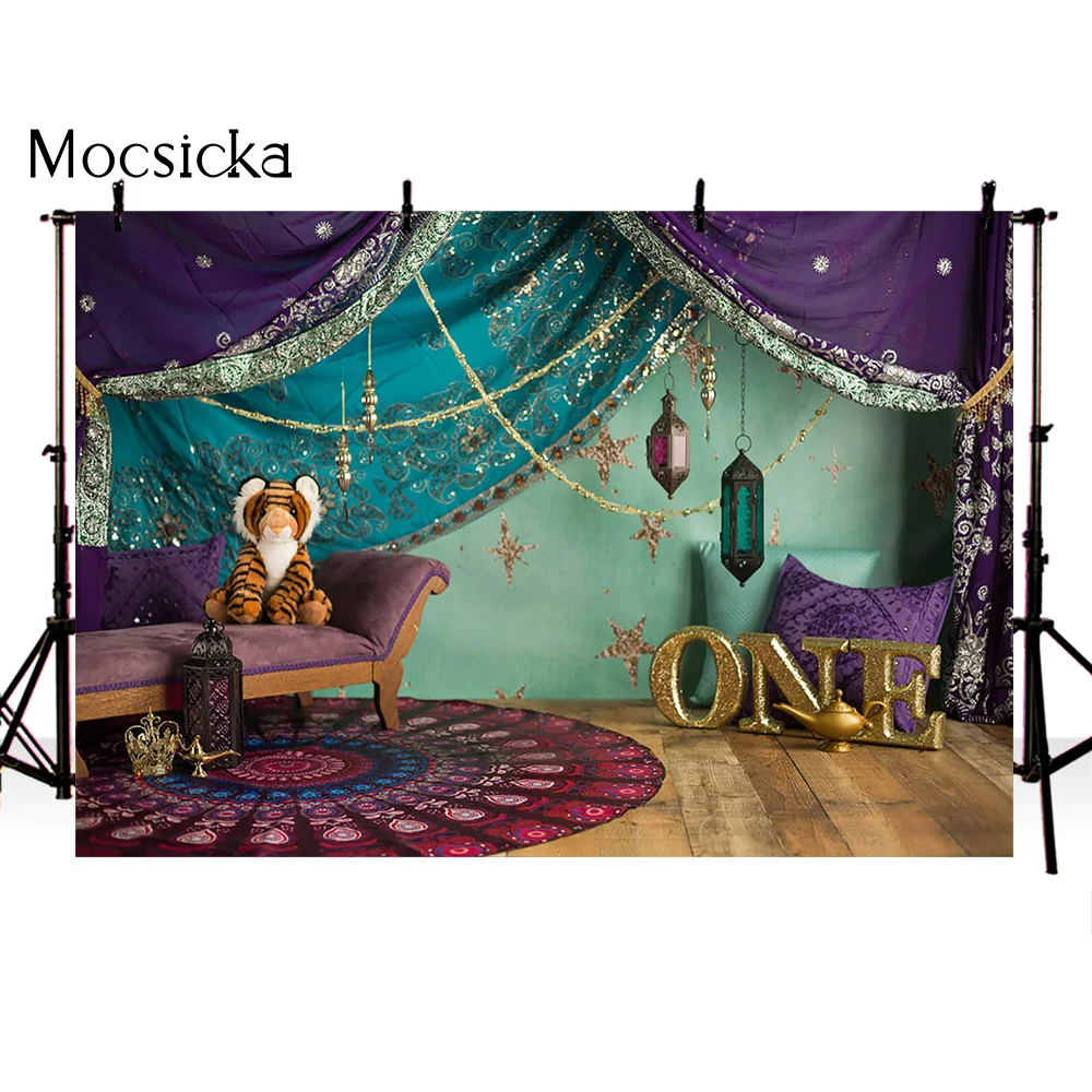 Фон для фотографирования новорожденных с изображением торта Рамадана ИД Мубарак Золотая полая люстра Луна Арабская архитектура