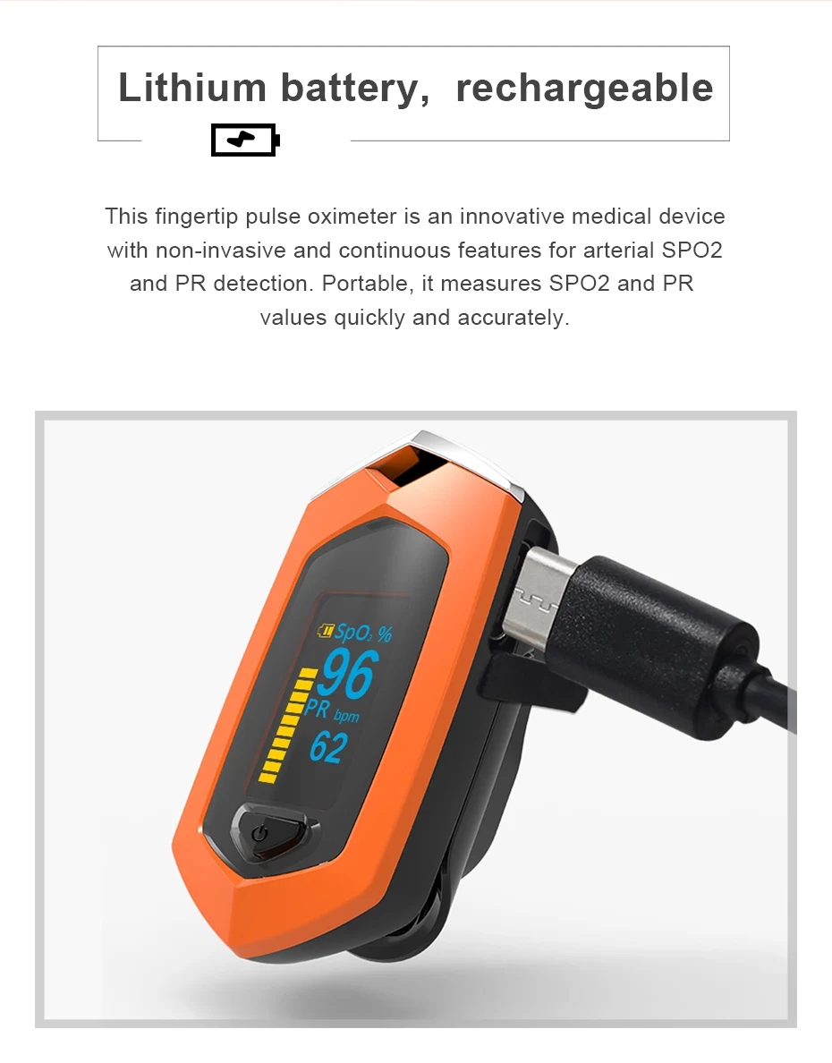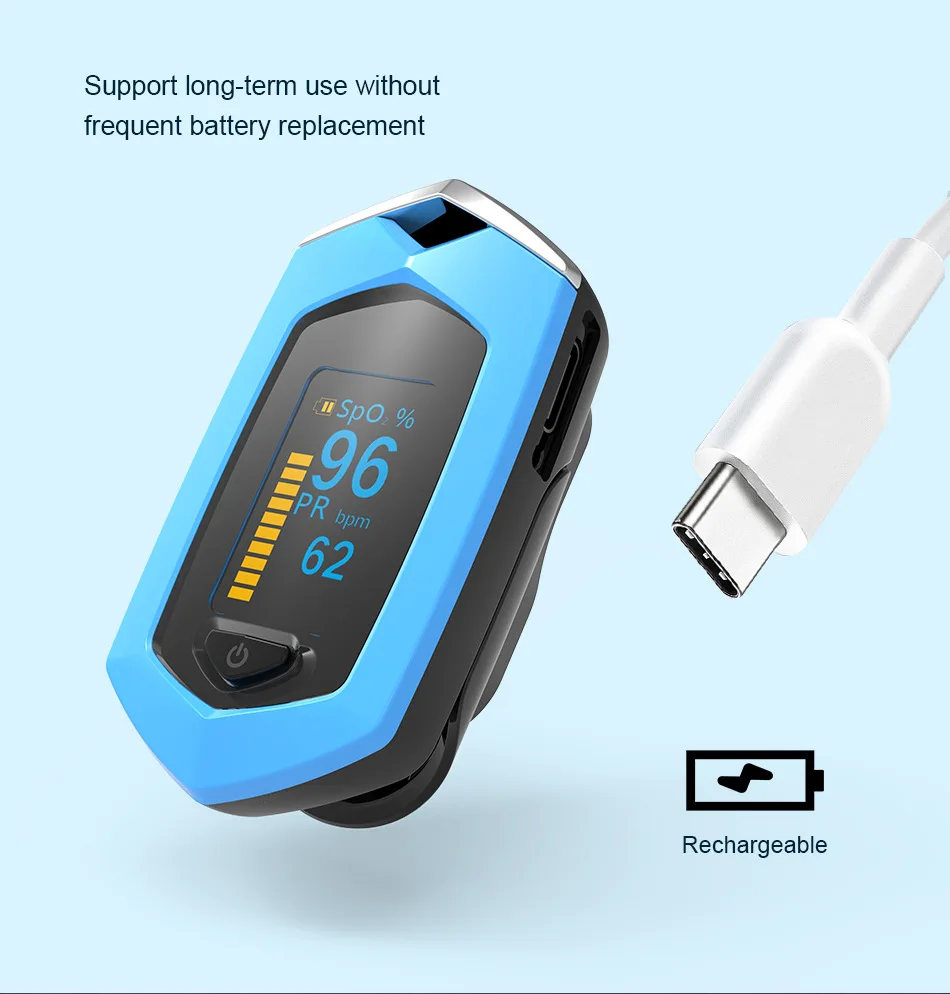 Пульсоксиметр перезаряжаемый со встроенной литиевой батареей и монитором насыщения кислородом