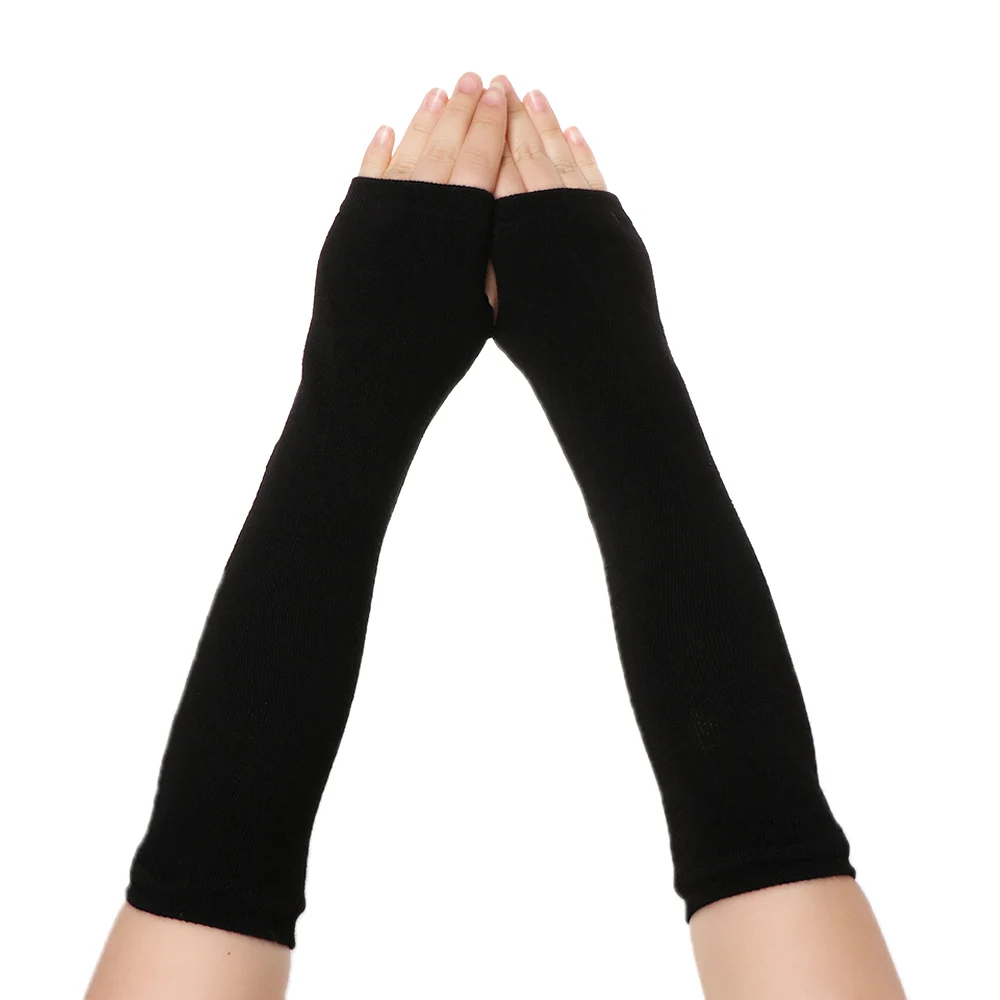 Длинные вязаные перчатки без пальцев для женщин и девочек, хлопковы...