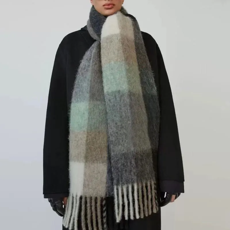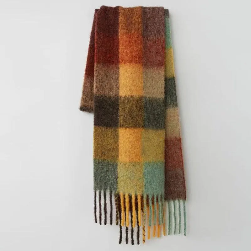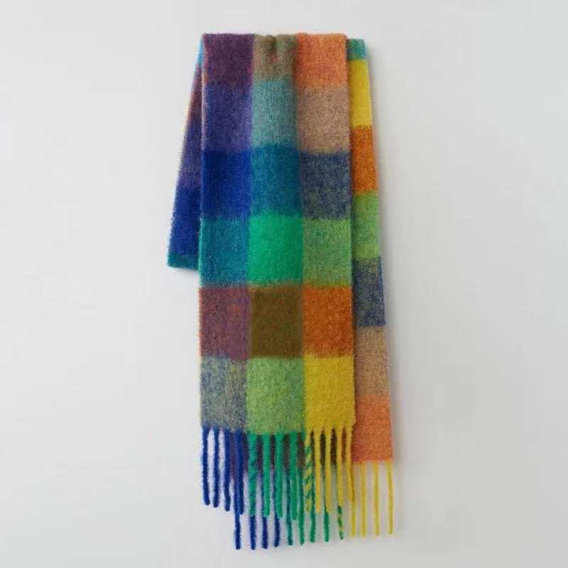 Зимний кашемировый шарф в клетку, модная шаль, цветные клетчатые шарфы, теплые шеи для студентов и толстые, bufanda invierno mujer