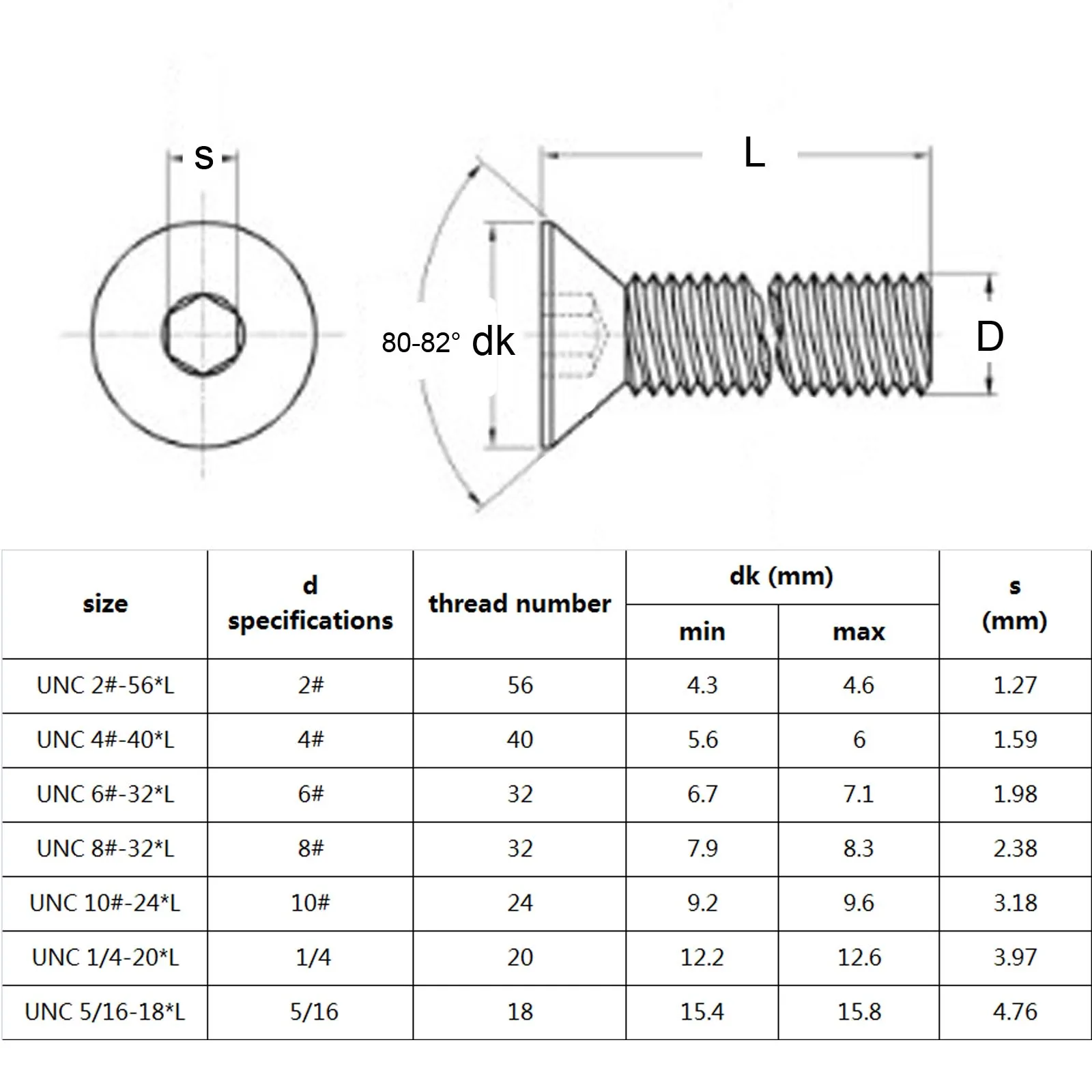 Есть 10 шт. Высокое качество США грубая резьба Шестигранная розетка потайная головка винт