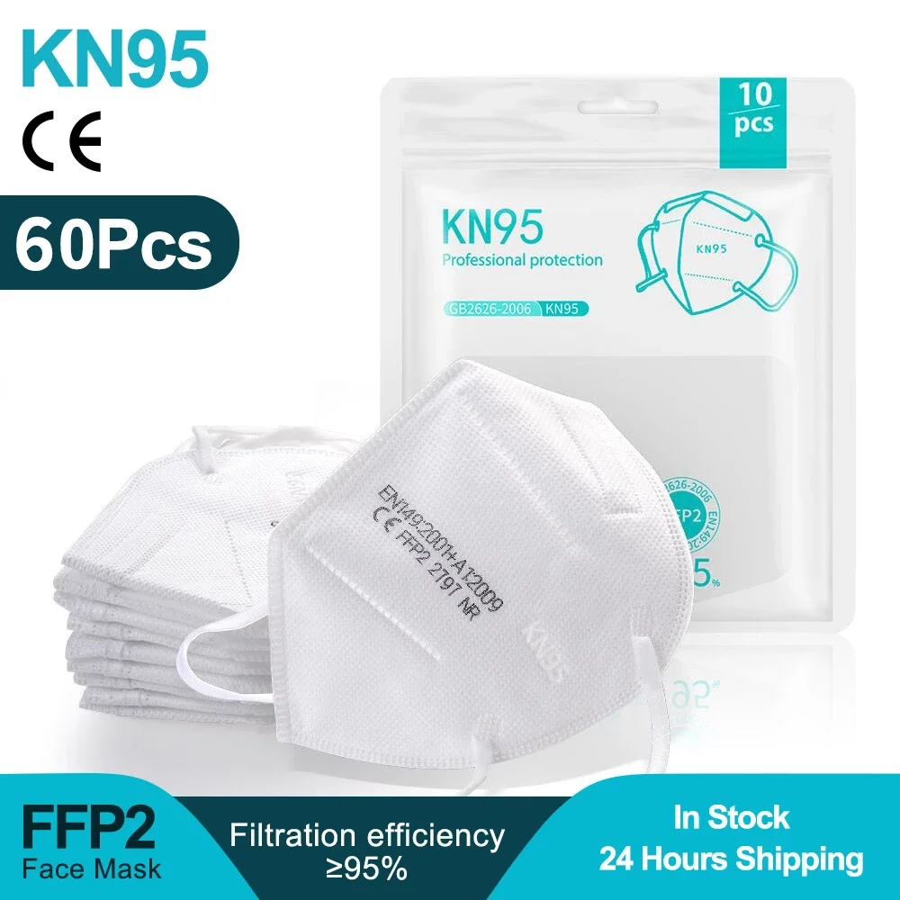 60 шт. KN95 маска для лица FFP2 маски пыленепроницаемый безопасный ...
