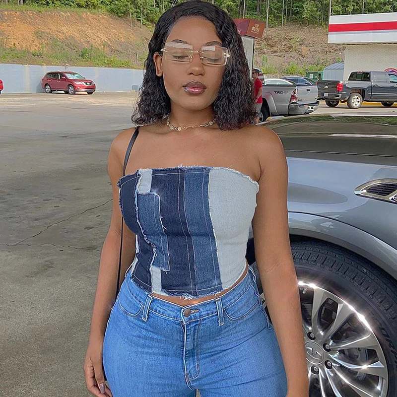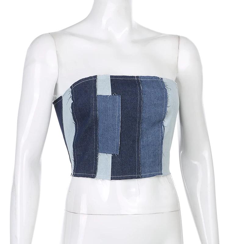 Топ женский джинсовый с перекрестными шнуровками, без рукавов, с открытой спиной