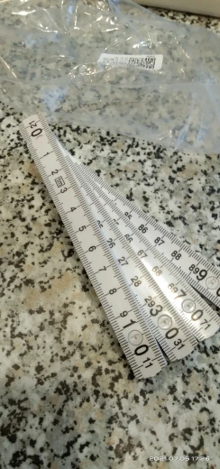 метр расскладной Супер!. мне очень понравился. качество вполне хорошее (время покажет). Цифры нанесены краской (не углублены), но не стирается. с одной стороны в начале шкалы, лишний первый меллиметор. но это не критично)) можно шлифануть! на стыках, дополнительно укреплено металлическим стержнем, это отлично%. Рекомендую товар и спасибо за посылку)). 2.5 недели до Минска.