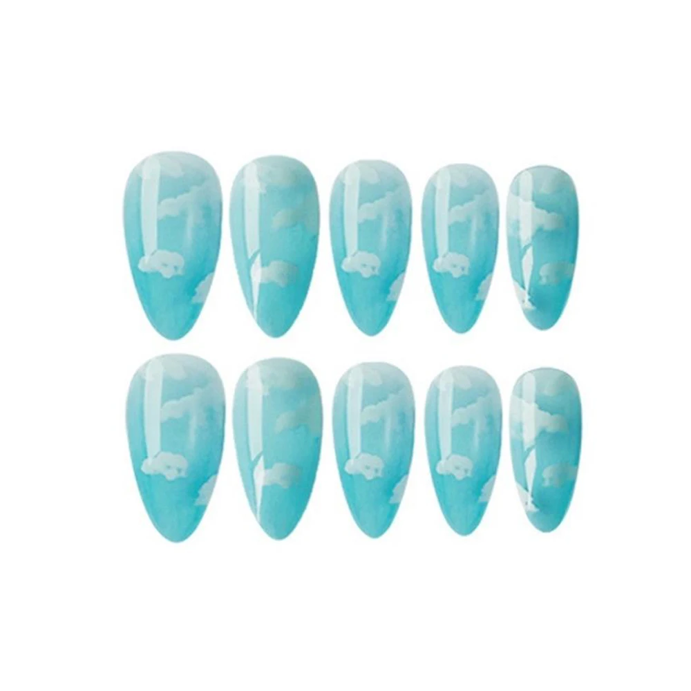 24 шт., накладные ногти с рисунком голубого неба и белых облаков