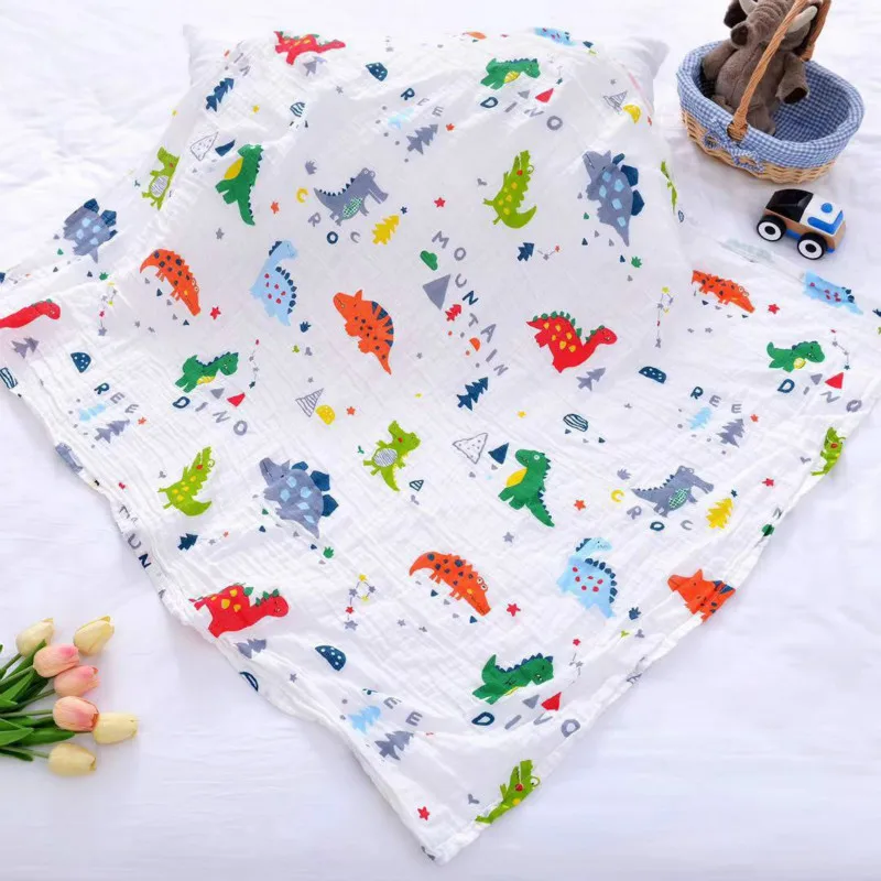 Муслиновое одеяло для пеленок, Хлопковое одеяло для новорожденных, легкая ткань для купания, накидка в коляску, 120 см х 110 см
