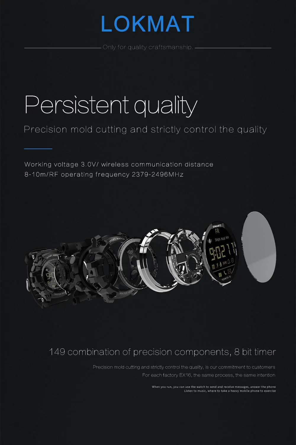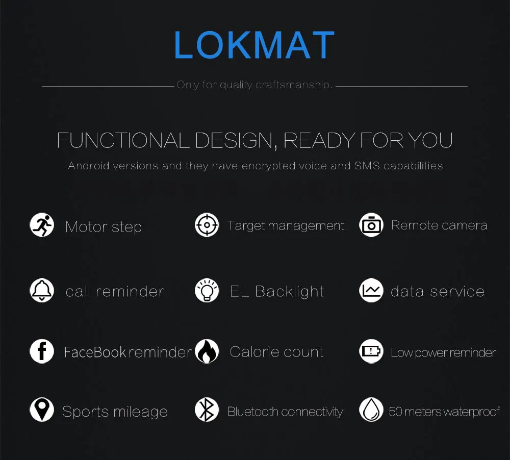 LOKMAT MK16 Smart watch Bluetooth информационное push-уведомление ф...