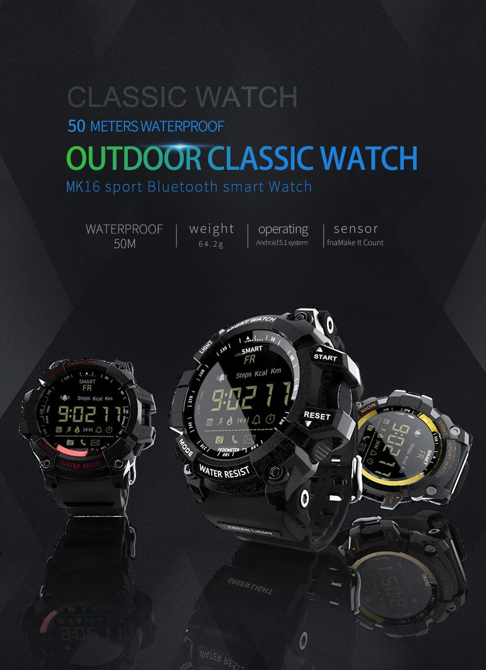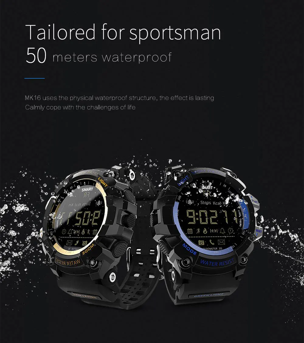 Спортивные мужские часы Lokmat MK16, IP67, водонепроницаемые, с шагомером и поддержкой Bluetooth