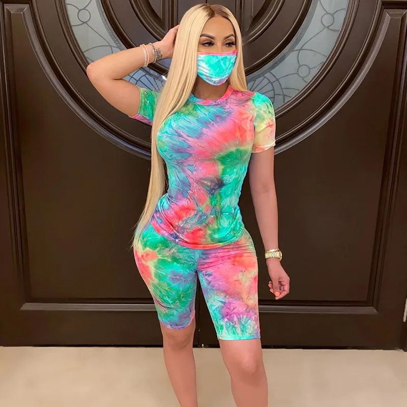 Женский комплект спортивной одежды с принтом тай-дай, Женский пулов...