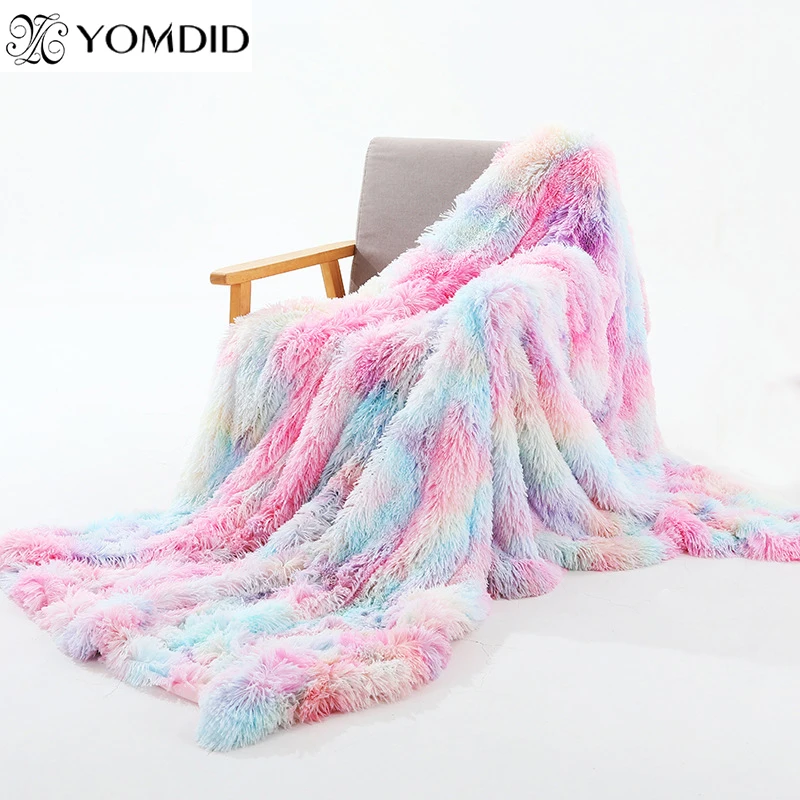 Очень мягкое плюшевое одеяло, одеяло из радужного кораллового флиса, разноцветная наволочка, пушистое одеяло с мехом, теплое уютное одеяло для дивана на зиму
