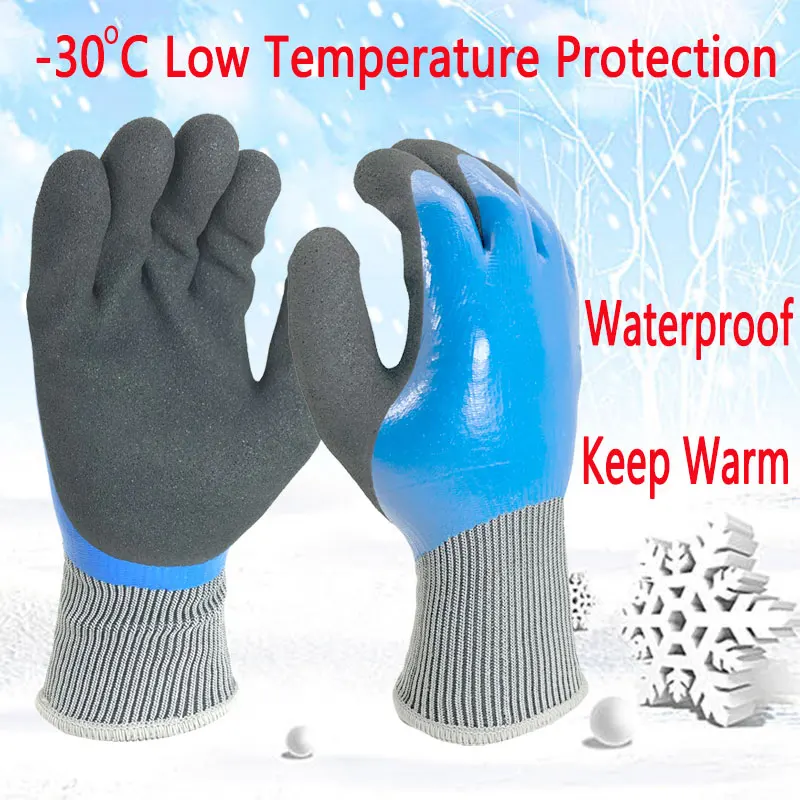Двойная покрытая латексом ладонь, теплые рабочие перчатки для зимних и водонепроницаемых нитрильных перчаток с двойной оболочкой.