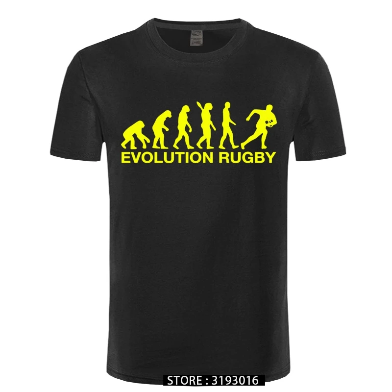 Эволюция Rugbying печатных хлопковые футболки мужская повседневная футболка с короткими рукавами и круглым вырезом, забавный в стиле хип-хоп мужские спортивные футболки, замшевые туфли для мужчин