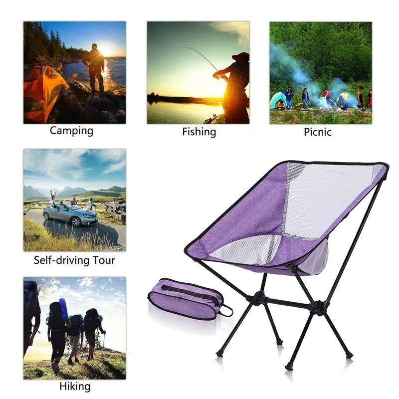 Название: открытый складной стул Материал: 600D катион + алюминиевый сплав Цвет: фиолетовый + белая сетка/фиолетовый + черная сетка Размер: расширение 53*35*67 см Хранение 34*11*10 см Вес: 900 г, может выдерживать 150 кг