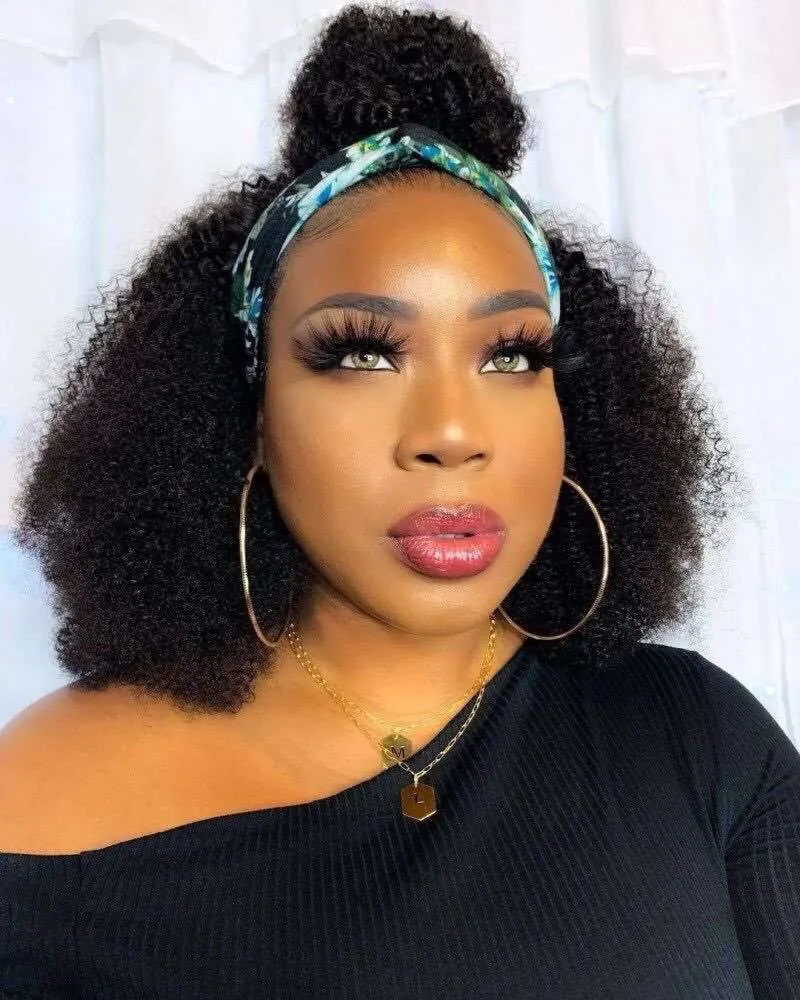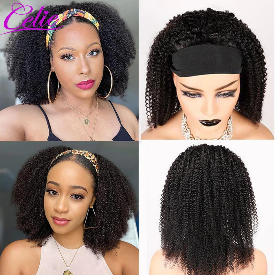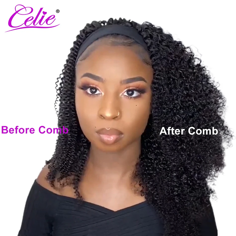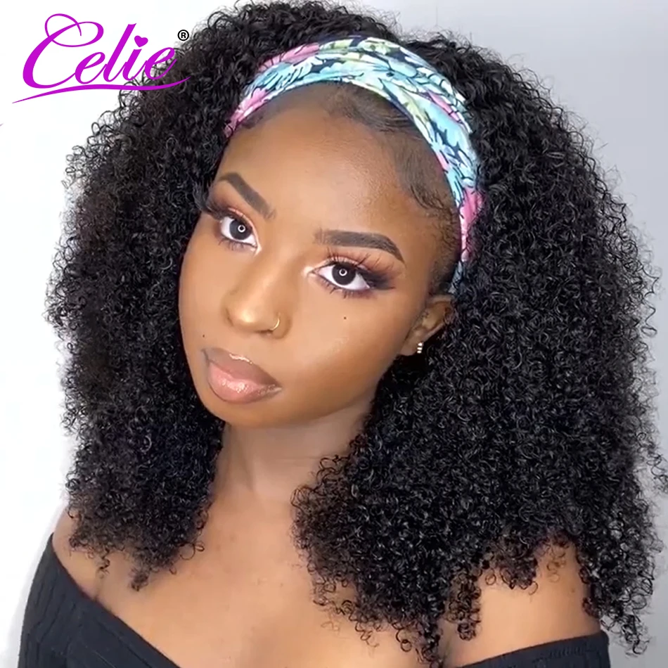 Celie Hair парик с головной повязкой вьющиеся человеческие волосы парик для черных женщин 150 плотность безклеевой шарф повязка человеческие волосы вьющиеся кружевной передний парик