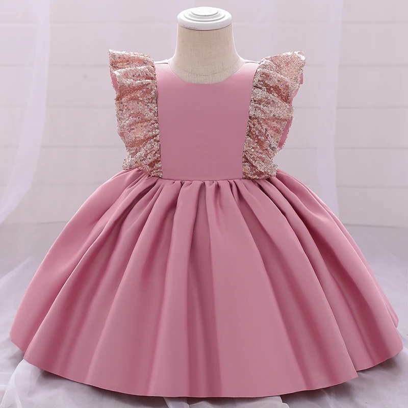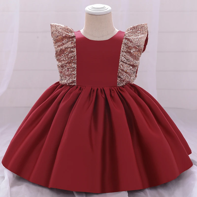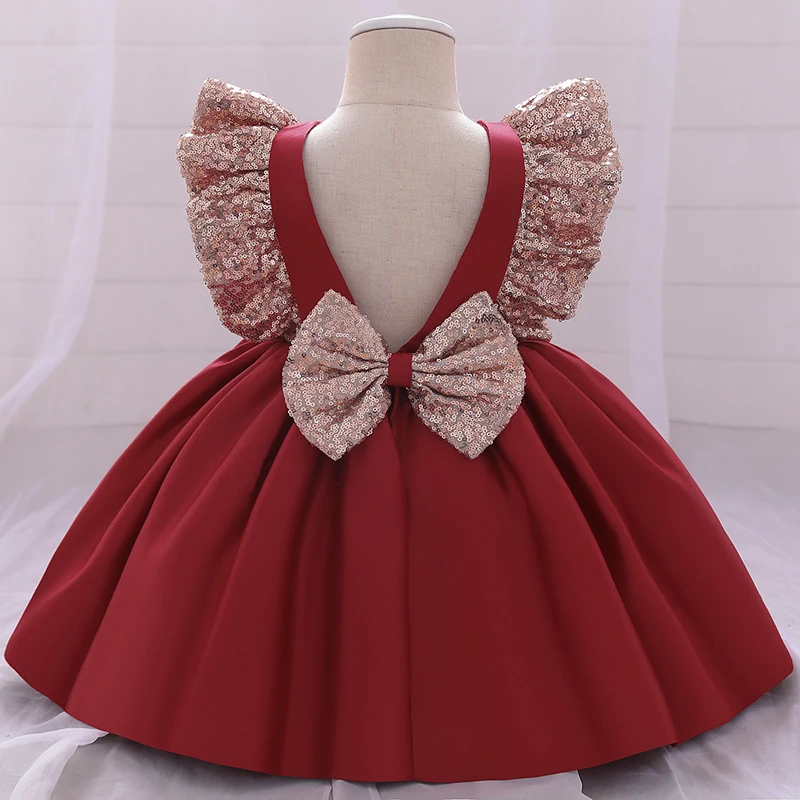 2022 Новогоднее платье, платье на 1-й день рождения для маленьких девочек, одежда с большим бантом, платья принцессы для крещения, платье с блестками для первого церемонии, праздничное платье