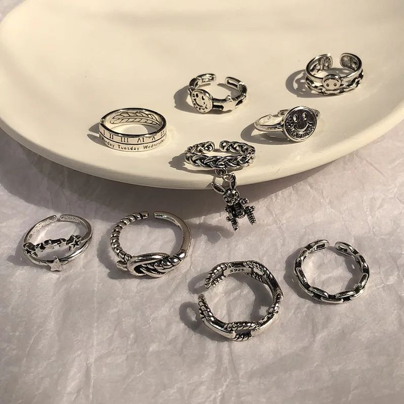 Кольцо женское, многослойное, широкое, со смайликом, античное серебро, 2020