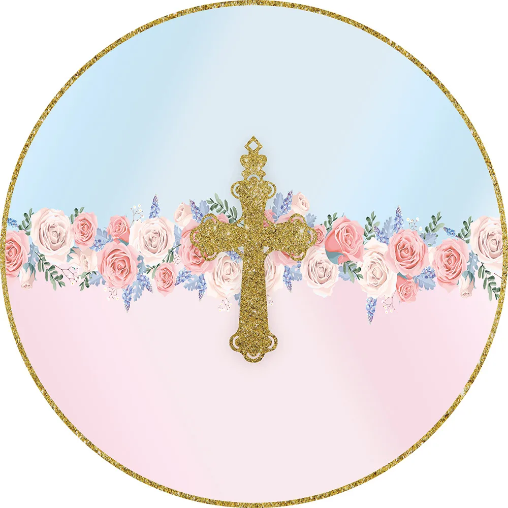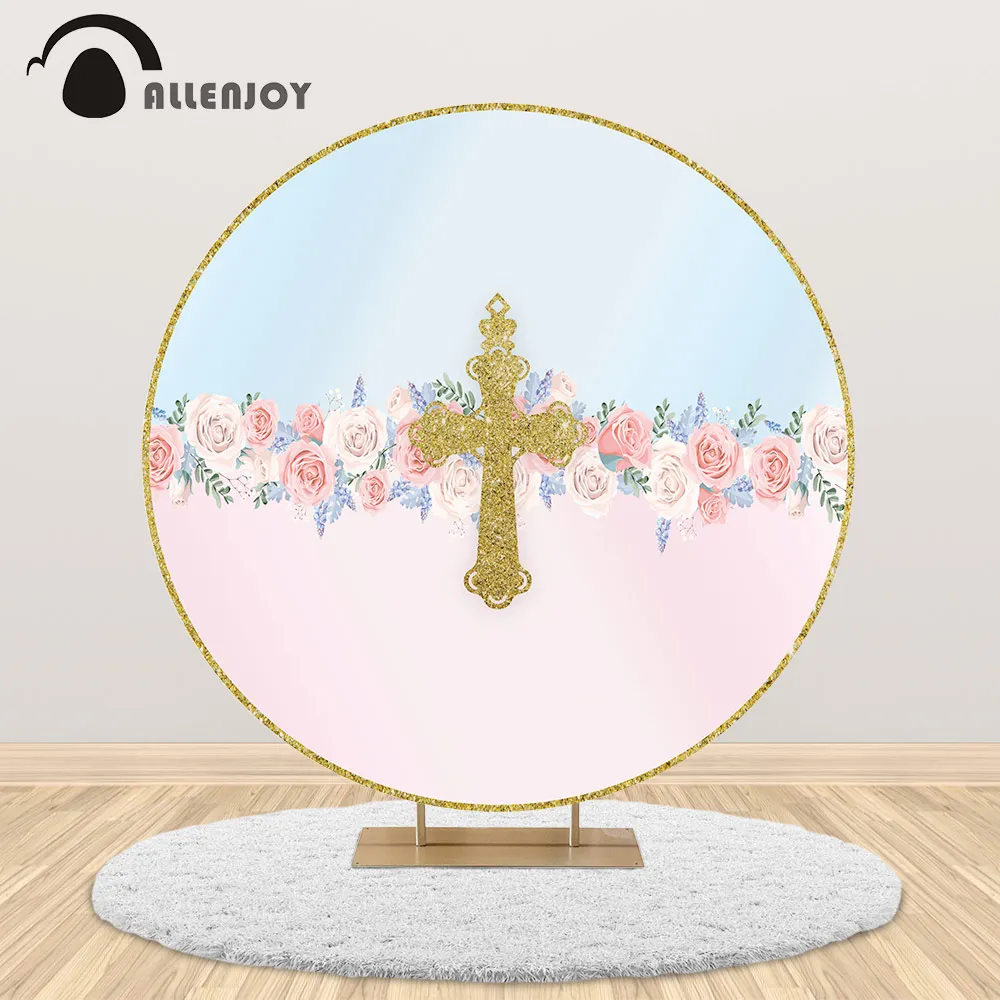 Allenjoy мой первый Причастие крещение круглый фон задник крышка крест душ для ребенка фотосессия фотозона обои